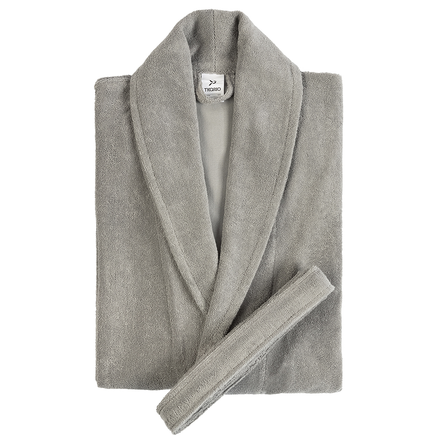 "Халат махровый серого цвета из коллекции Essential подарит чувство комфорта после ванны и душа. Мягкая, при этом прочная ткань изготавливается из лучших сортов длинноволокнистого хлопка методом тщательного прочесывания, что значительно улучшает эксплуатационные характеристики готового изделия. Материал устойчив к износу, быстро впитывает влагу, оставляя приятное ощущение свежести и чистоты. Халат хорошо держит форму и сохраняет привлекательный вид после множества стирок. Модель с шалевым воротником дополнена двумя карманами и широким поясом.
