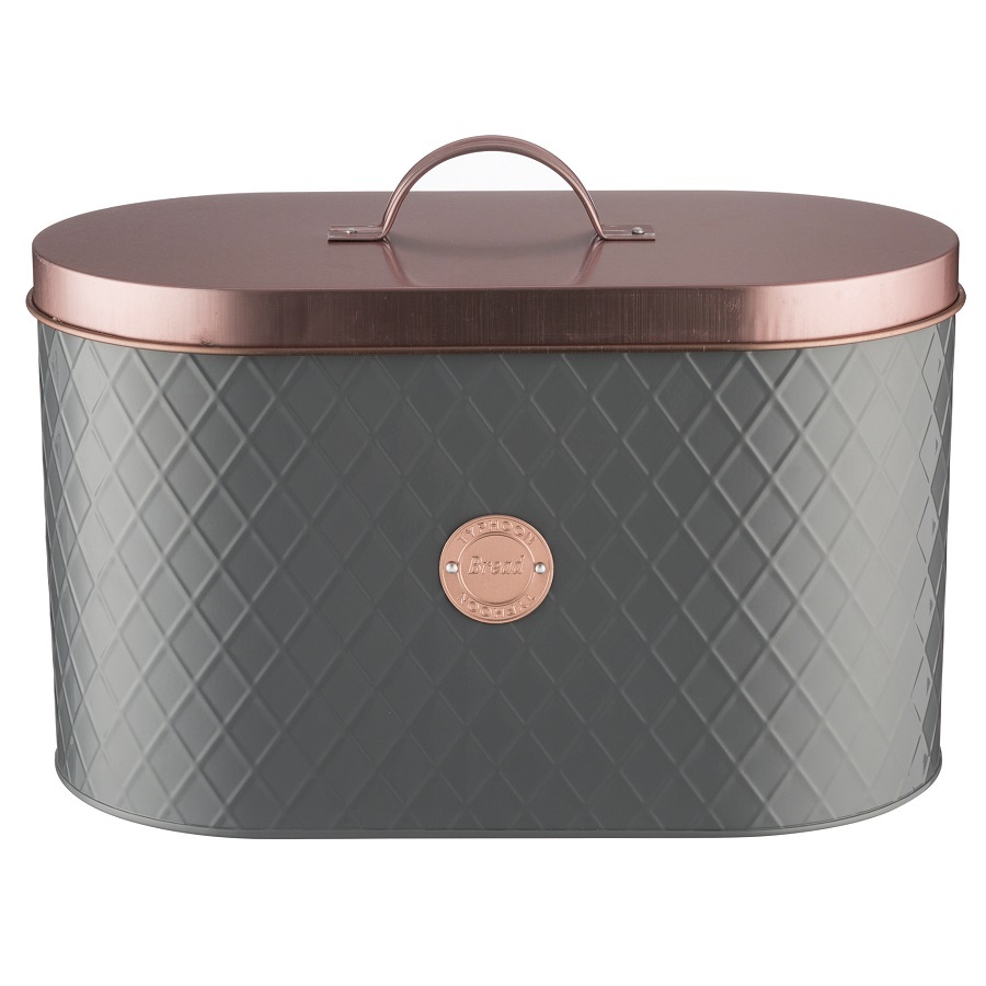 "Хлебница Henrik идеально подходит для хранения различной выпечки: хлеба, багетов, круассанов, булочек и печенья. Изделие выполнено из стали, которая не подвержена деформации и коррозии. , ,Стильная крышка медного цвета герметично закрывает емкость, не позволяя посторонним запахам попадать внутрь и сохраняя свежесть выпечки. Для ухода производитель рекомендует ручное мытье."