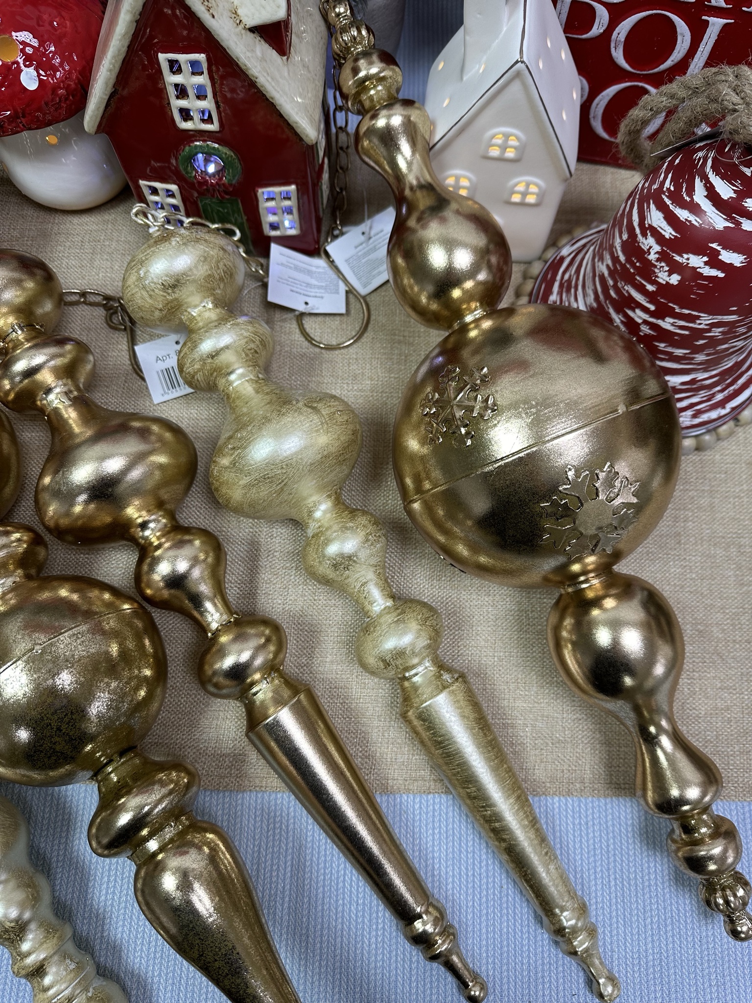 Новогоднее украшение из металла – декоративное подвесное украшение с симметричным дизайном, состоящее из сфер разного диаметра, складывающихся вертикально. Украшение подвешено на металлической цепочке с крючком сверху. Выглядит элегантно и подойдет для создания праздничной атмосферы в вашем интерьере.