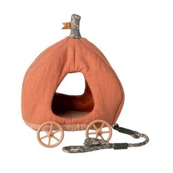 Начните сказку... Идеальная карета - тыква для королевской семьи мышей, когда они отправятся за пределы замка. Внутренняя часть кареты обита хлопком в горошек, а пол покрыт мягким мехом. Колеса и оси изготовлены из металла и могут быть отсоединены. Шнурки также можно снять. Карета поставляется в красивой упаковке.