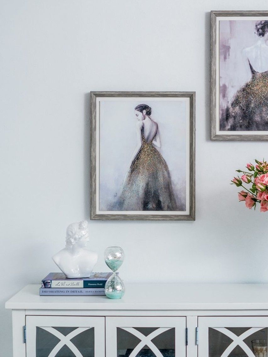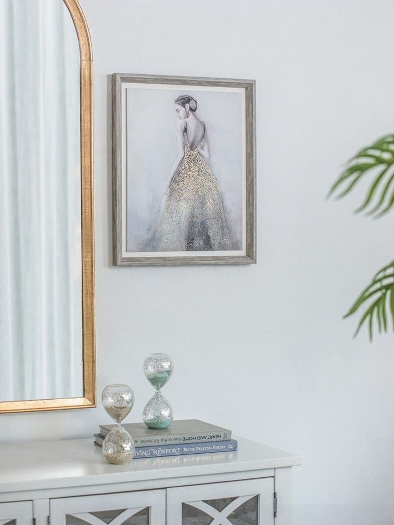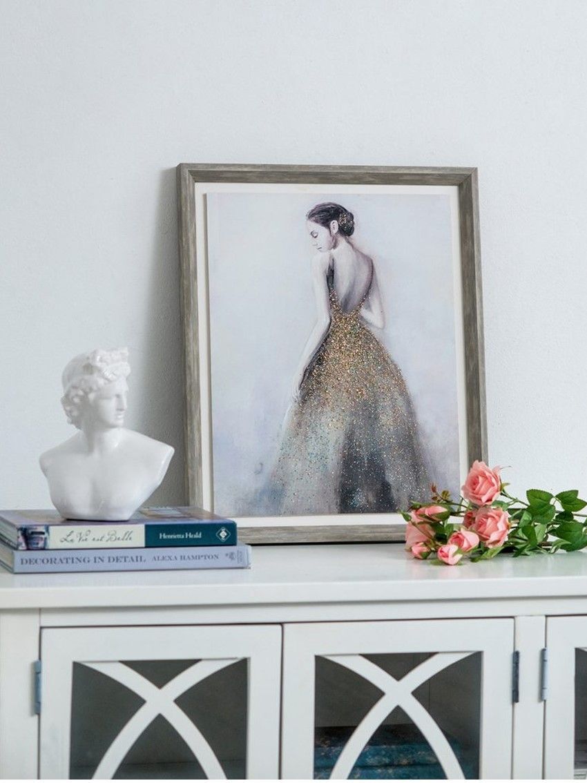 Отметьте красоту и изящество женской формы с помощью настенного искусства. Утонченные расцветки подчеркнуты кристально-сверкающими деталями на талии женского платья. В обрамлении мягкого дерева это искусство легко вписывается в любой стилевой декор.