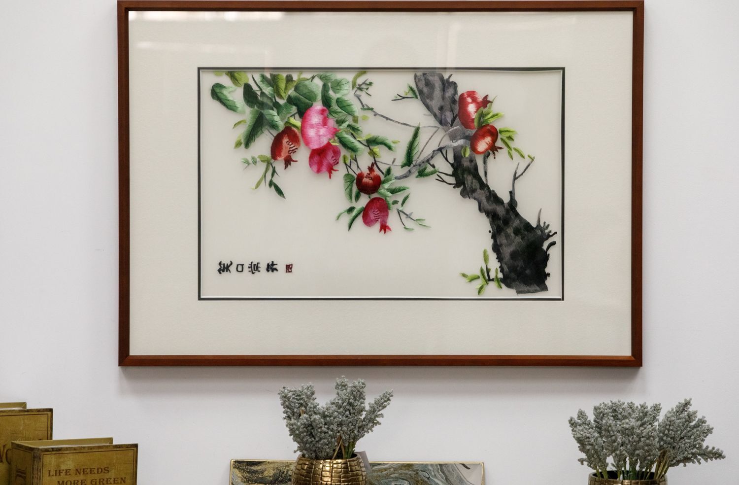 Картина гладью Ветвь гранатового дерева 83х4х58см