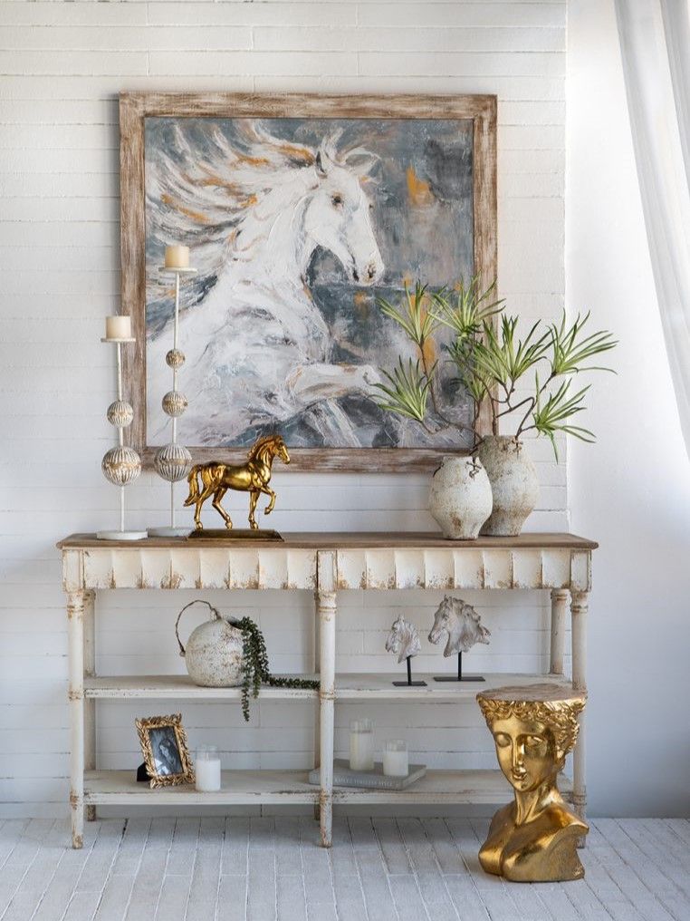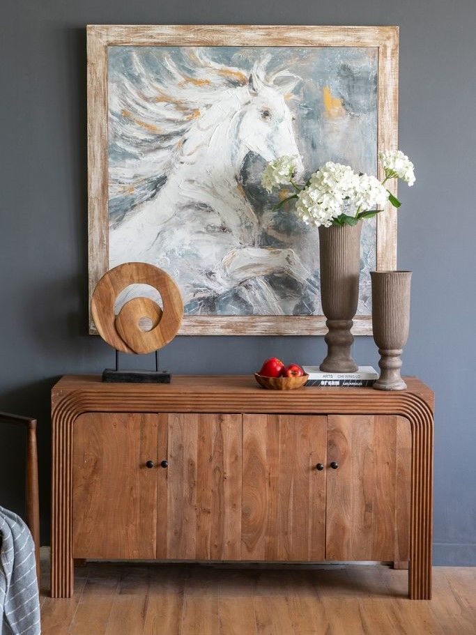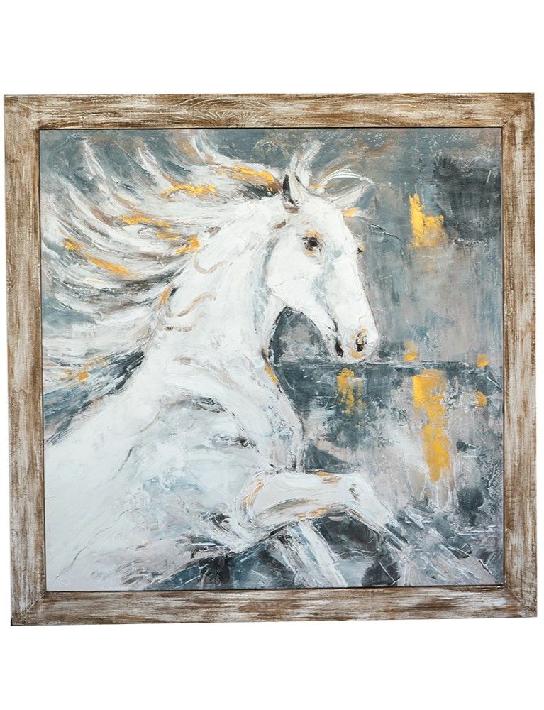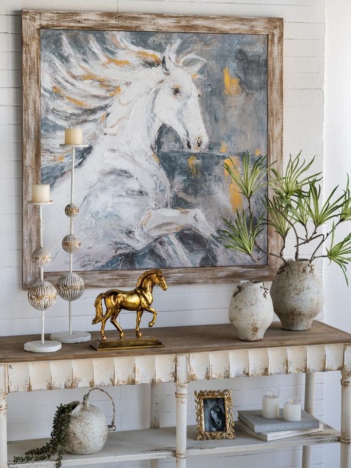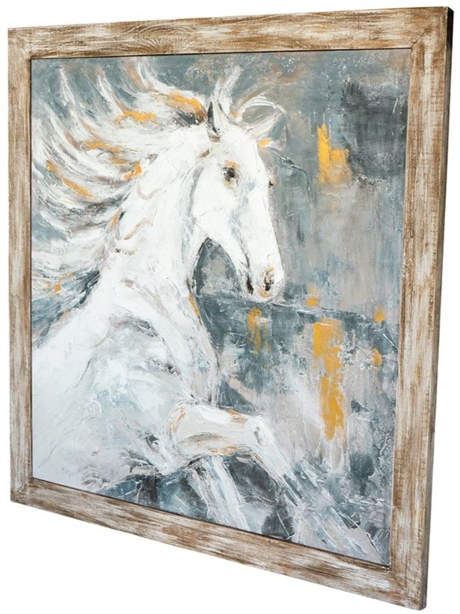 Произведение искусства в раме из натурального елового дерева, мастерски передающее необузданную силу природы, представляет силуэт скачущей лошади, нарисованную вручную с реалистичными деталями. Нейтральная цветовая гамма позволяет этому изделию дополнять интерьеры в стиле кантри, рустикальном, бохо и модерн, обеспечивая его гармоничную интеграцию в любую обстановку.