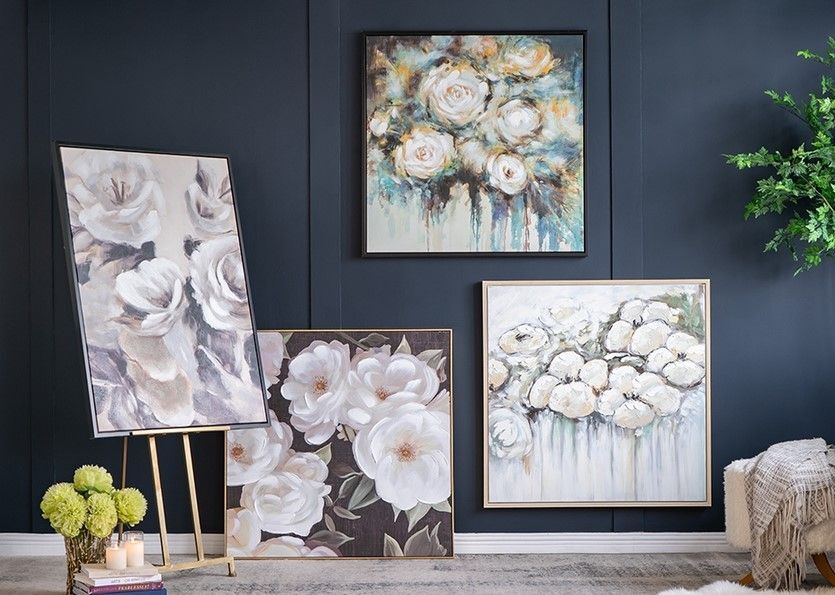 Мягкие мазки кисти создают букет изящных цветов в настенной живописи. Эти цветы с различными оттенками легко вписываются в любую цветовую палитру. Повесьте в спальной комнате, столовой или офисе, чтобы добавить акцент вашему интерьеру.