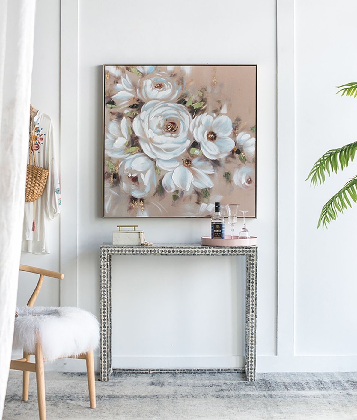 Мягкие нежные мазки кисти создают букет изящных цветов в настенной живописи. Эти цветы с легкими оттенками легко вписываются в любую цветовую палитру. Повесьте в спальной комнате, столовой или офисе, чтобы добавить нотку женственности.