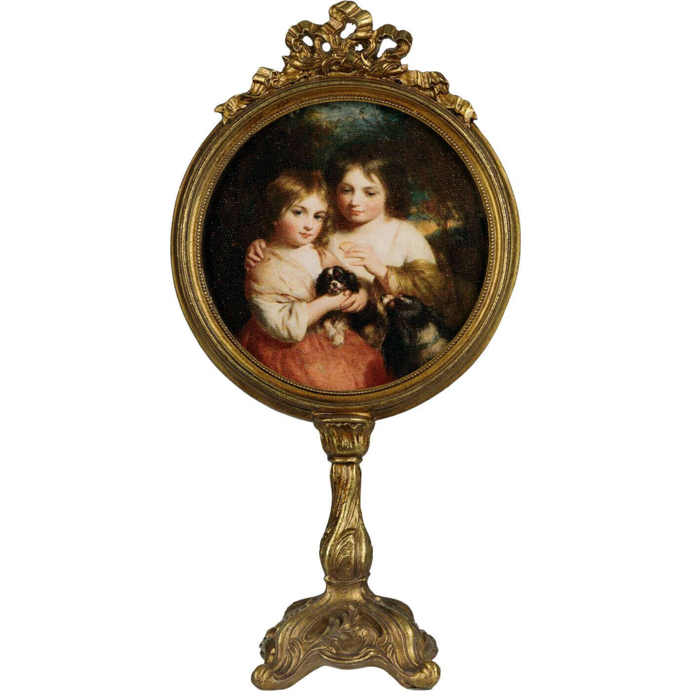 Картина настольная Сестры с собаками, масло, под старину 14x7x26см