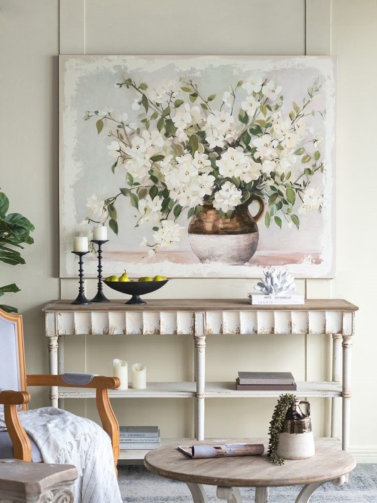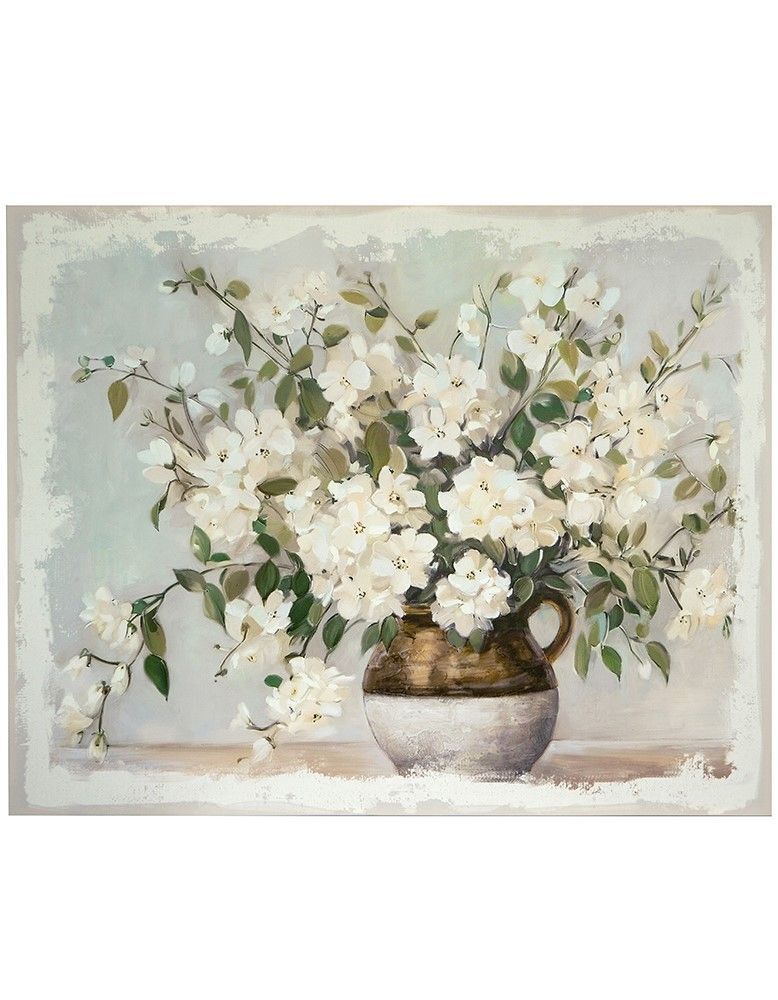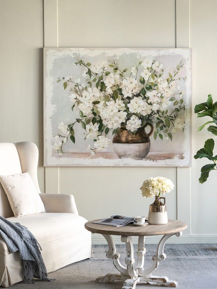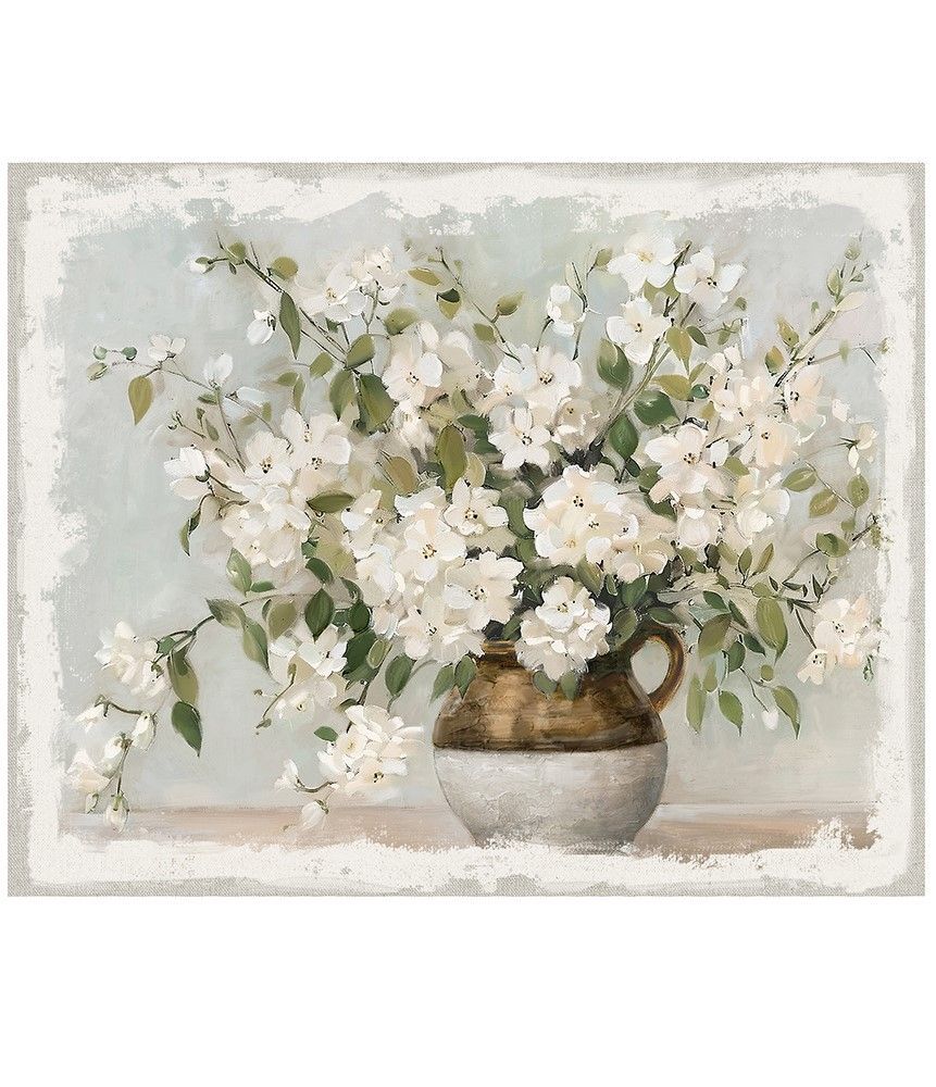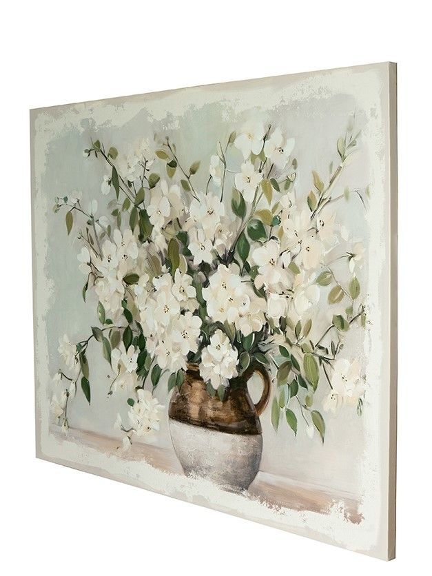 Превращая безмятежную красоту природы в романтическое произведение искусства, эта картина на холсте продемонстрирует композицию элегантных белых цветов, подчеркнутых оттенками зеленого, серого и коричневого. Рама выполнена из прочного соснового дерева, которое отличается исключительной долговечностью, надолго украшая интерьер гостиной, прихожей или спальни.