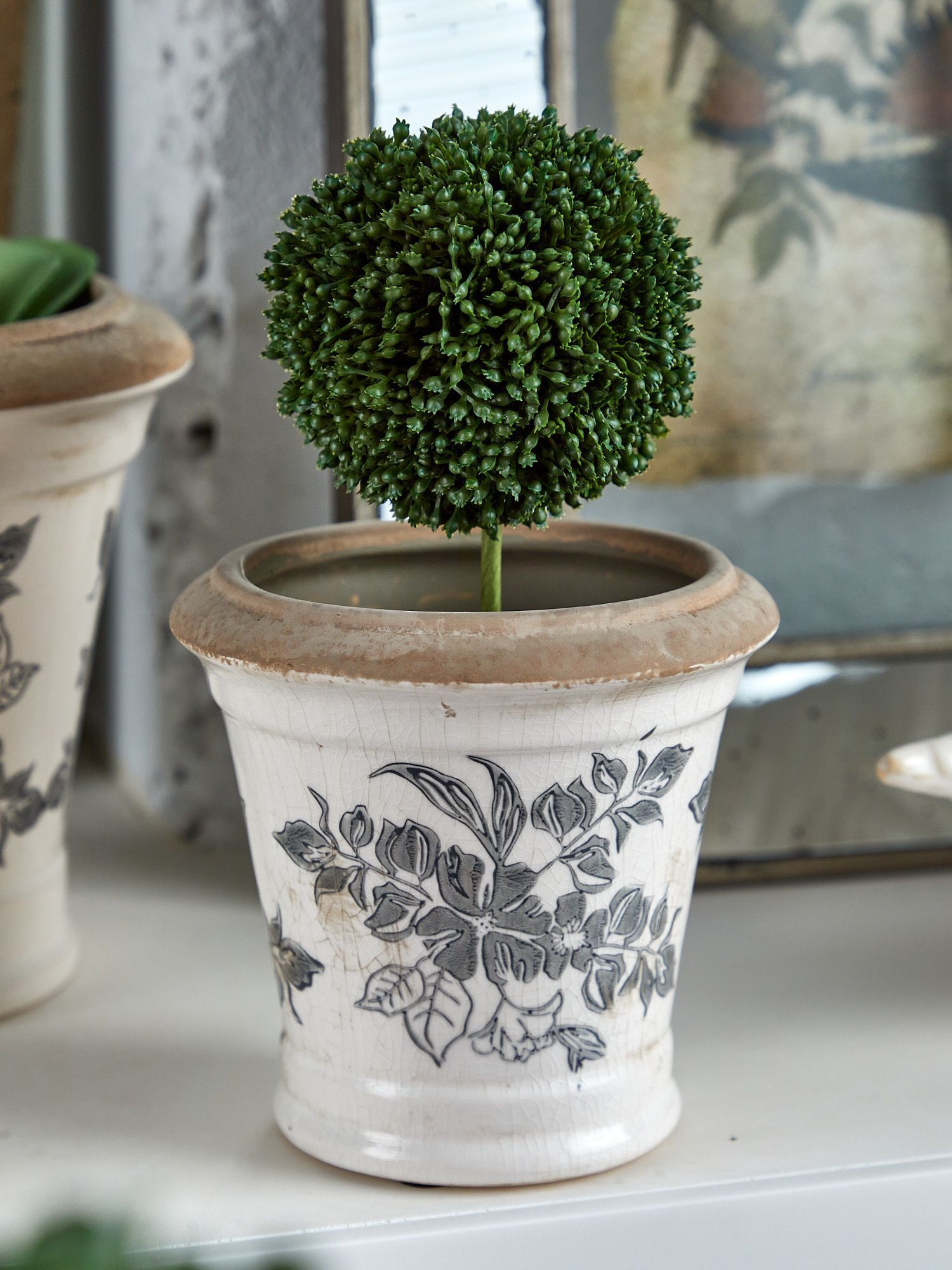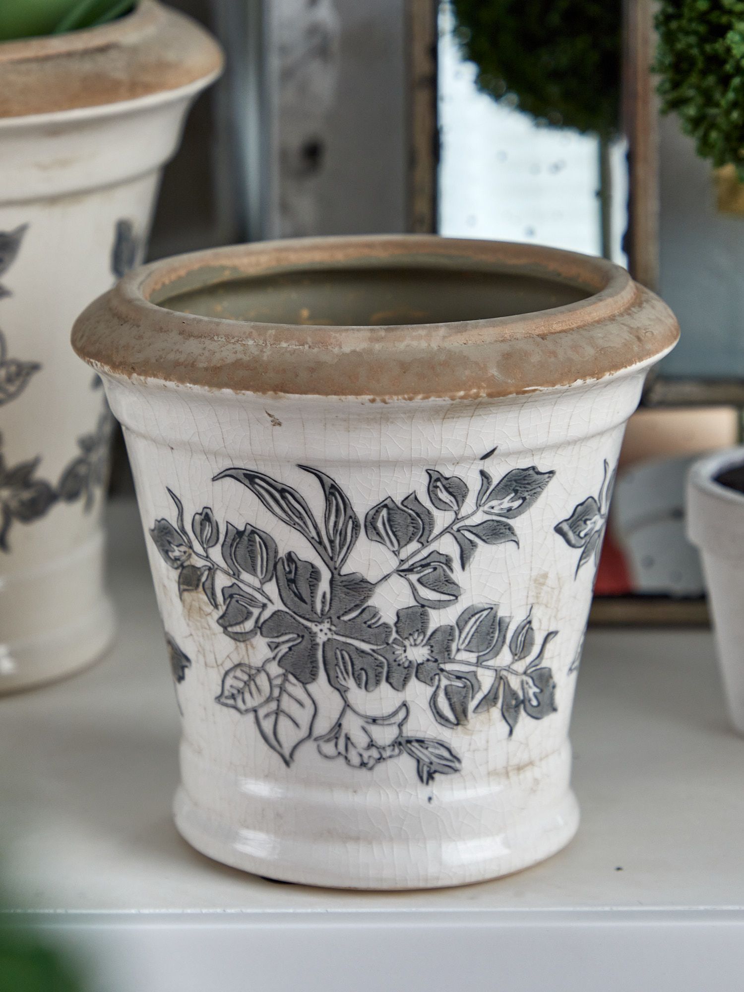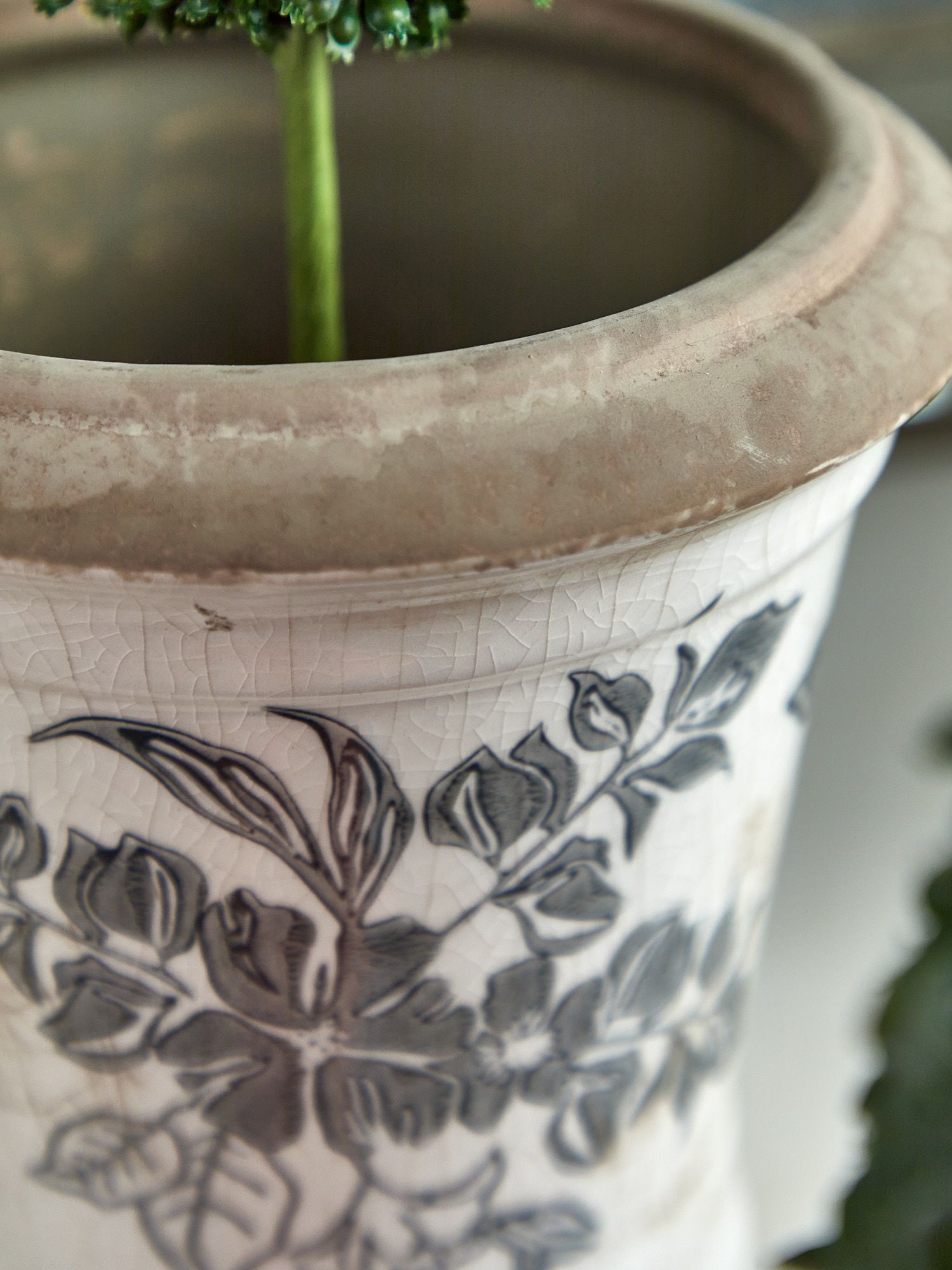 Привлекательное кашпо, выполненное в винтажном стиле, прекрасно подойдет для комфортного роста ваших растений. Изделие имеет оригинальный орнаментный рисунок в синем оттенке.