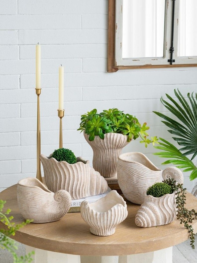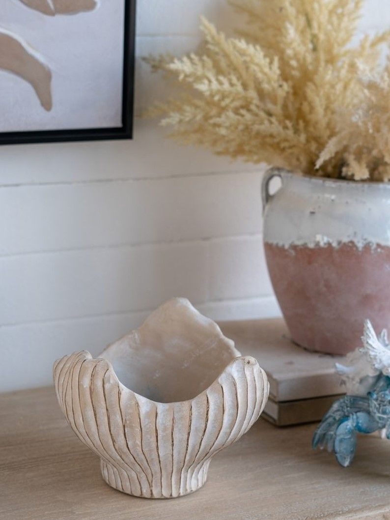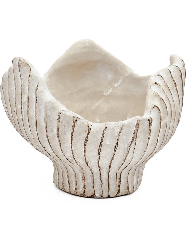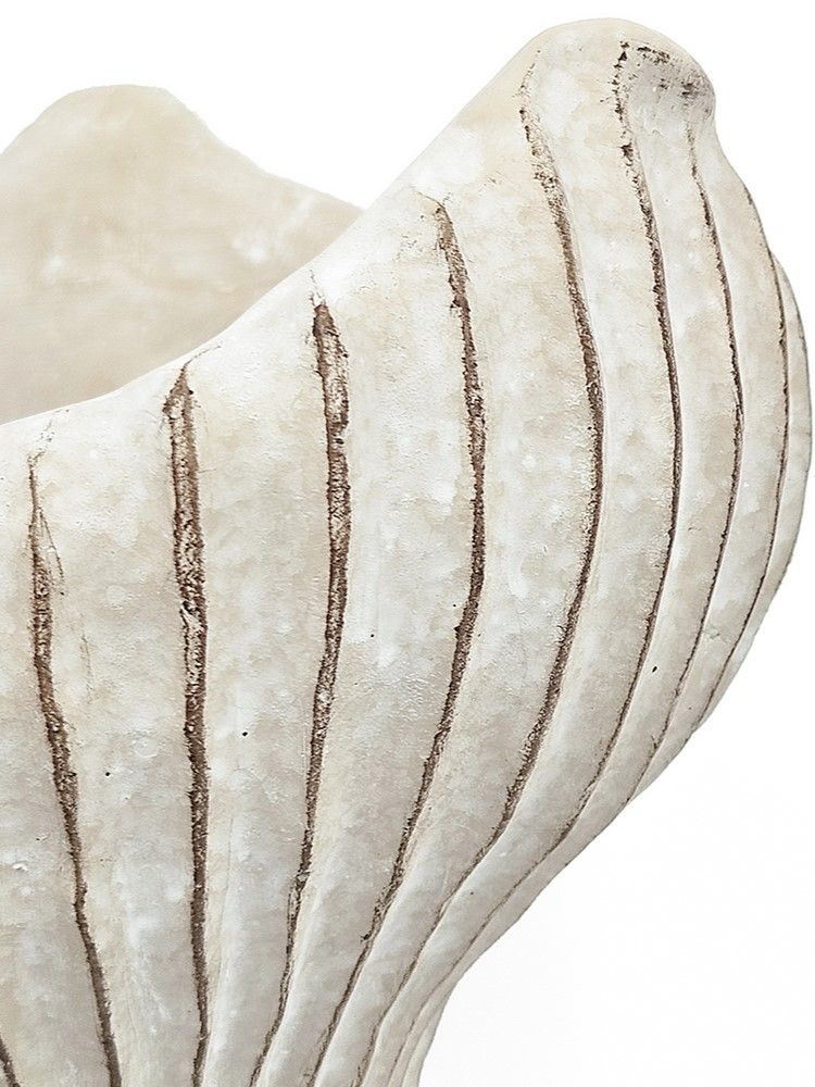 Декоративное кашпо с резными краями в верхней части, ребристой фактурной отделкой, выполнено из цемента в песочно-коричневым цвете. Независимо от того, выставляется ли изделие отдельно или в паре с суккулентами, травами или вьющимися растениями, кашпо наполнит любую комнату в вашем доме безмятежной энергией.