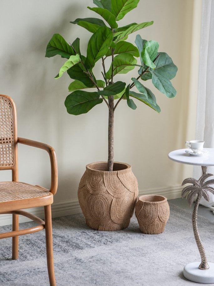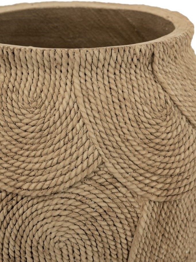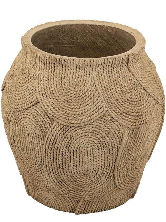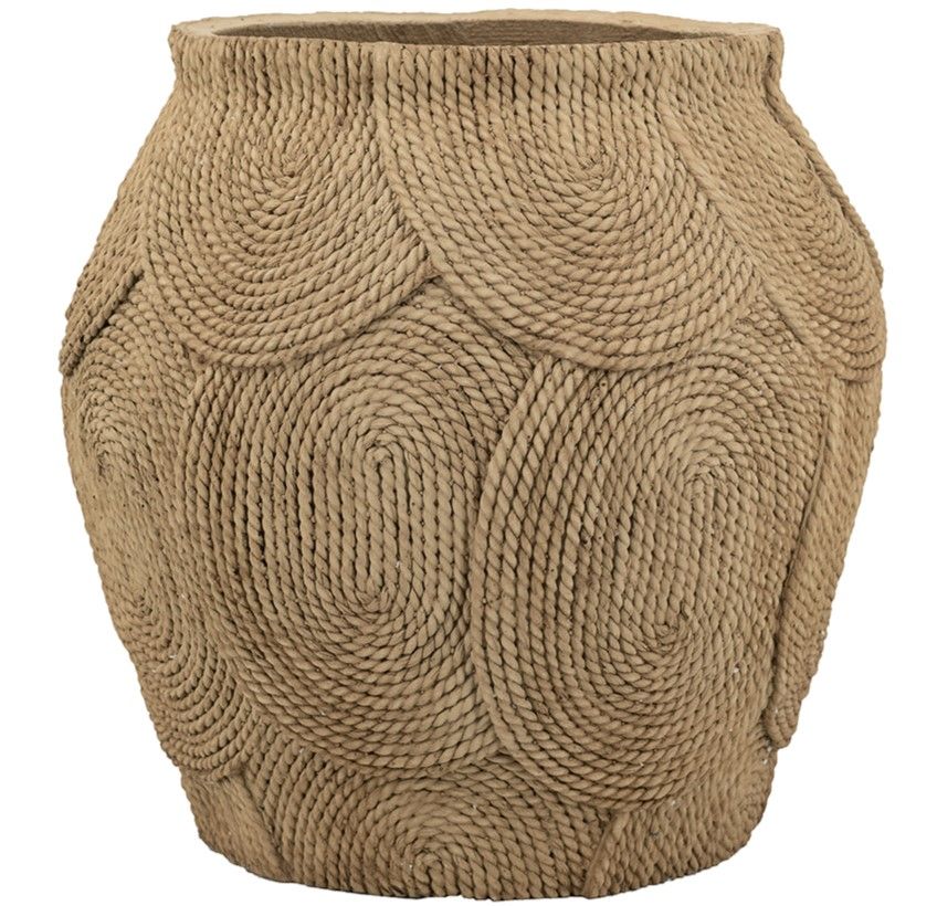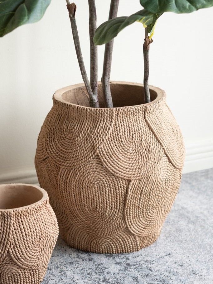 Интересное кашпо, изготовленное из цемента в винтажном стиле, представляет собой классический округлый силуэт, текстурную фактуру в виде отделки веревочным орнаментом с коричневым оттенком. Изделие идеально смотрится как в отдельности, так и в сочетании с красочной коллекцией суккулентов или ампельных растений. Кашпо украсит любую гостиную, столовую или прихожую. Цветовая гамма и интересные узоры позволяют этому изделию дополнять интерьеры в стиле бохо, рустик, фермерский стиль и арт-деко, органично вписываясь в любую обстановку дома.