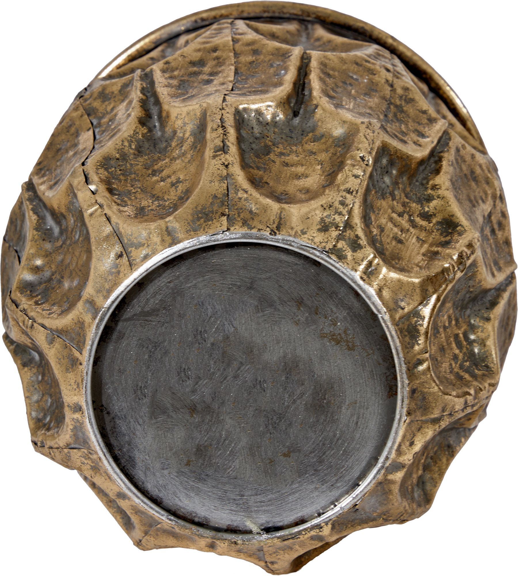Необычное кашпо Эфиопия, выполненное из металла с эффектом под старину, напылением золотистого цвета и фактурным корпусом. Цветочные композиции из сухоцветов, размещенные в это кашпо, создадут необычный образ в вашем интерьере. Эксклюзивные формы и фактуры навеяло богатство культуры Африки, множество художественных традиций и таинственная атмосфера, окутывающая неподражаемостью. Изделие имеет признаки искусственного состаривания, поверхность декорирована с эффектом патинирования, а наличие сварочных швов подчеркивают принадлежность к ручной работе.