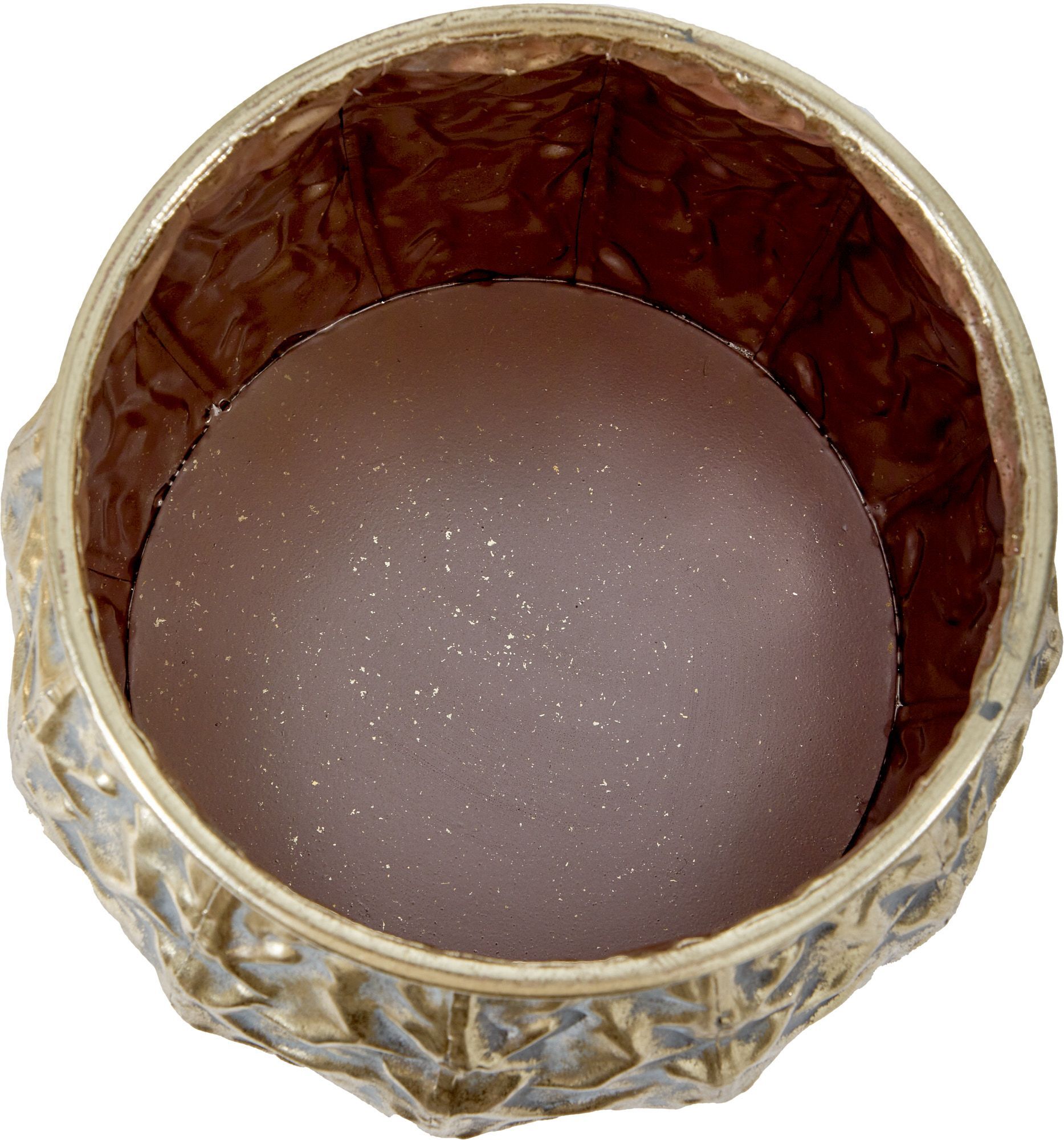 Кашпо Гана, выполненное из металла в африканском стиле с напылением золотистого цвета и фактурным корпусом, создано для сухоцветов и искусственных цветочных композиций. Растения, размещенные в это кашпо, произведут необычный образ в вашем интерьере. Эксклюзивные формы и фактуры навеяло богатство культуры Африки, множество художественных традиций и таинственная атмосфера, окутывающая неподражаемостью. Изделие имеет признаки искусственного состаривания, поверхность декорирована с эффектом патинирования, а наличие сварочных швов подчеркивают принадлежность к ручной работе.