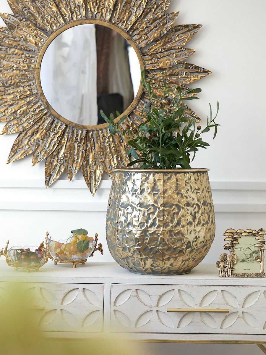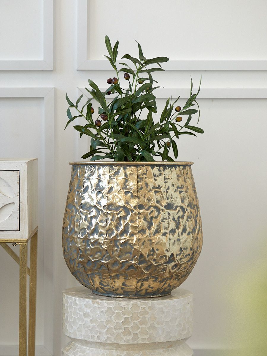 Кашпо Гана, выполненное из металла в африканском стиле с напылением золотистого цвета и фактурным корпусом, создано для сухоцветов и искусственных цветочных композиций. Растения, размещенные в это кашпо, произведут необычный образ в вашем интерьере. Эксклюзивные формы и фактуры навеяло богатство культуры Африки, множество художественных традиций и таинственная атмосфера, окутывающая неподражаемостью. Изделие имеет признаки искусственного состаривания, поверхность декорирована с эффектом патинирования, а наличие сварочных швов подчеркивают принадлежность к ручной работе.