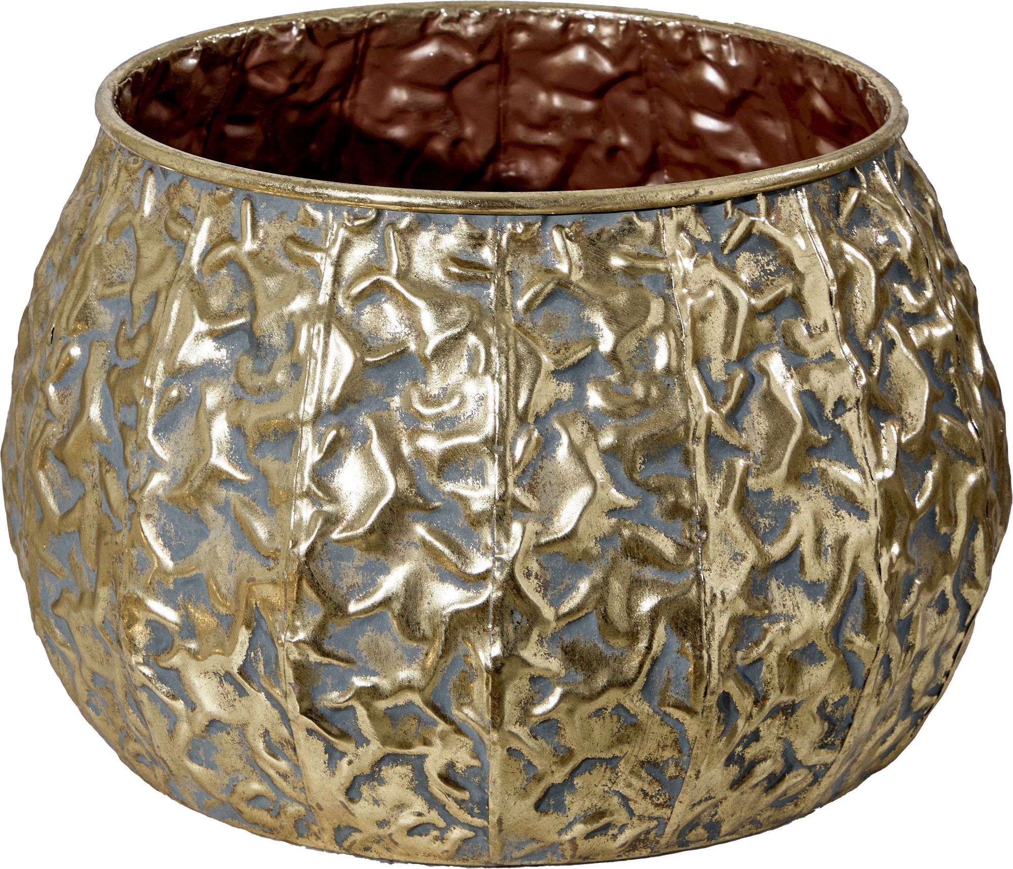 Кашпо Гана, выполненное из металла в африканском стиле с напылением золотистого цвета и фактурным корпусом, создано для сухоцветов и искусственных цветочных композиций. Растения, размещенные в это кашпо, произведут необычный образ в вашем интерьере. Эксклюзивные формы и фактуры навеяло богатство культуры Африки, множество художественных традиций и таинственная атмосфера, окутывающая неподражаемостью. Изделие имеет признаки искусственного состаривания, поверхность декорирована с эффектом патинирования, а наличие сварочных швов подчеркивают принадлежность к ручной работе.