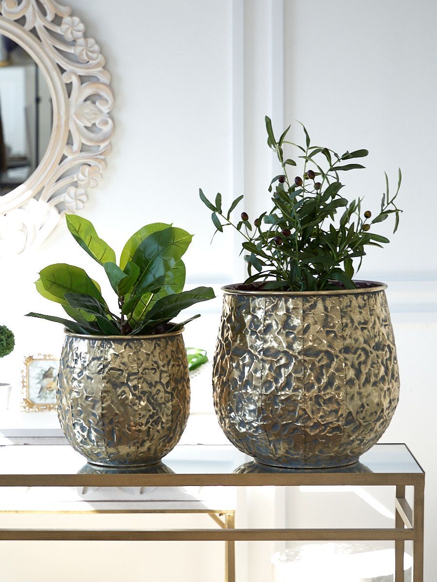 Набор из двух кашпо Гана, выполненных из металла в африканском стиле с напылением золотистого цвета, создан для сухоцветов и искусственных цветочных композиций. Растения, размещенные в эти кашпо, произведут необычный образ в вашем интерьере. Эксклюзивные формы и фактуры навеяло богатство культуры Африки, множество художественных традиций и таинственная атмосфера, окутывающая неподражаемостью. Изделия имеют признаки искусственного состаривания, поверхности декорированы с эффектом патинирования, а наличие сварочных швов подчеркивают принадлежность к ручной работе.