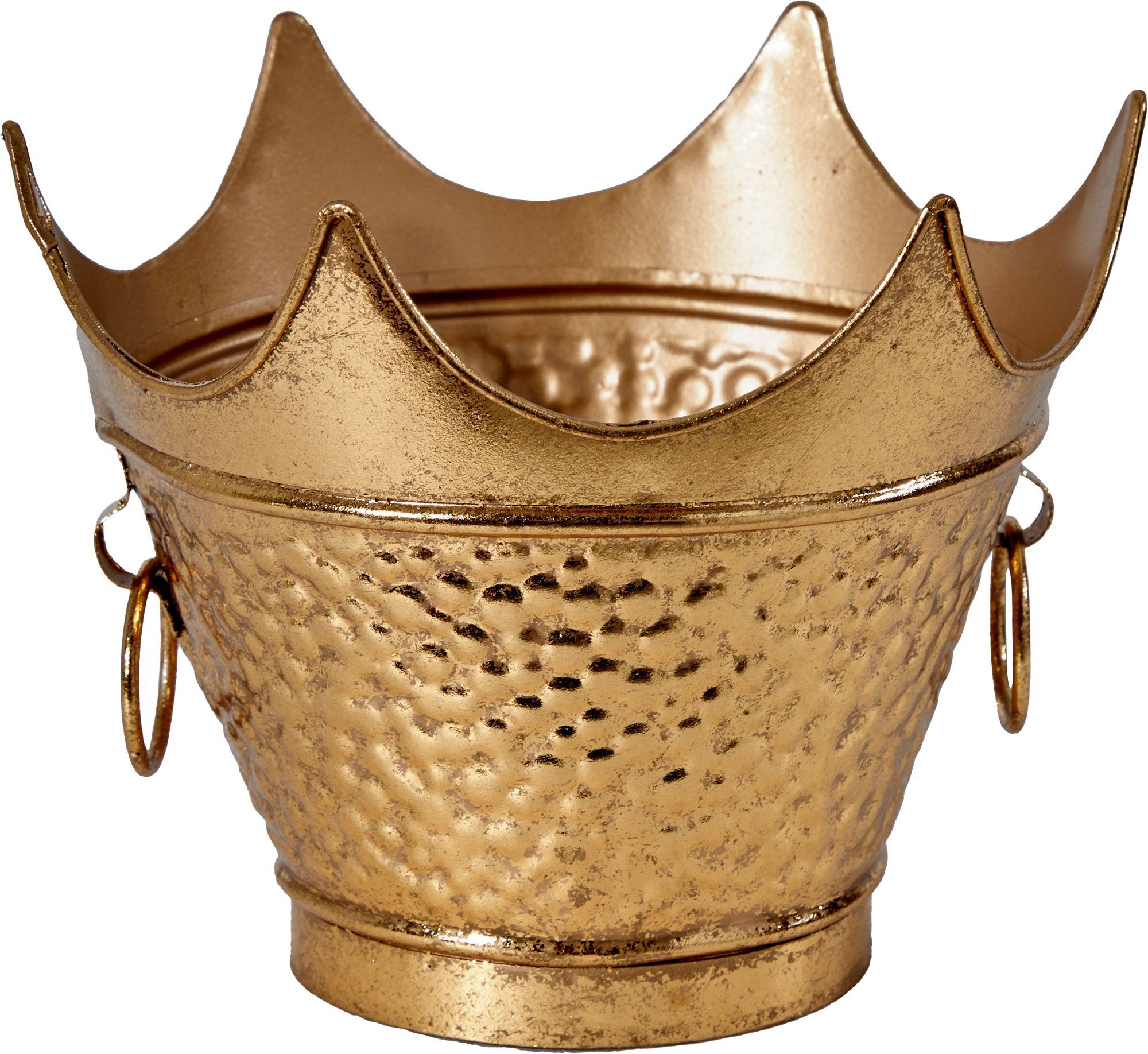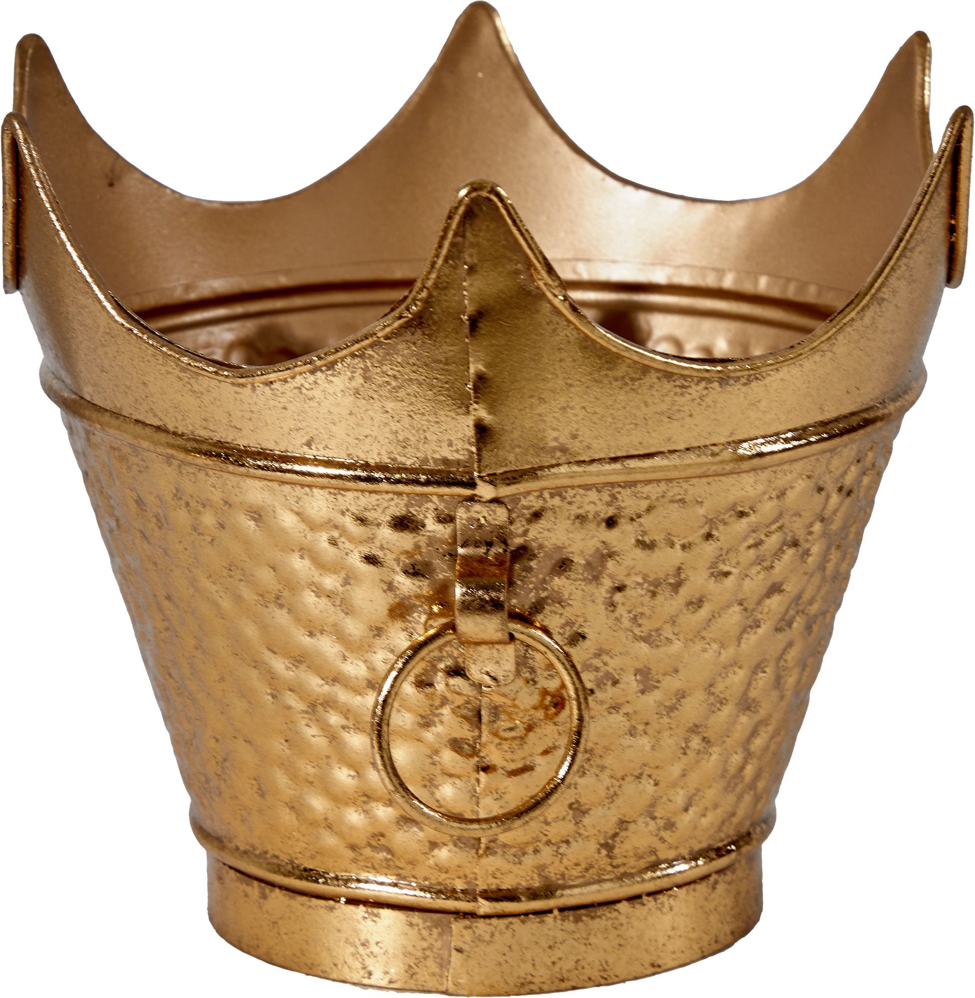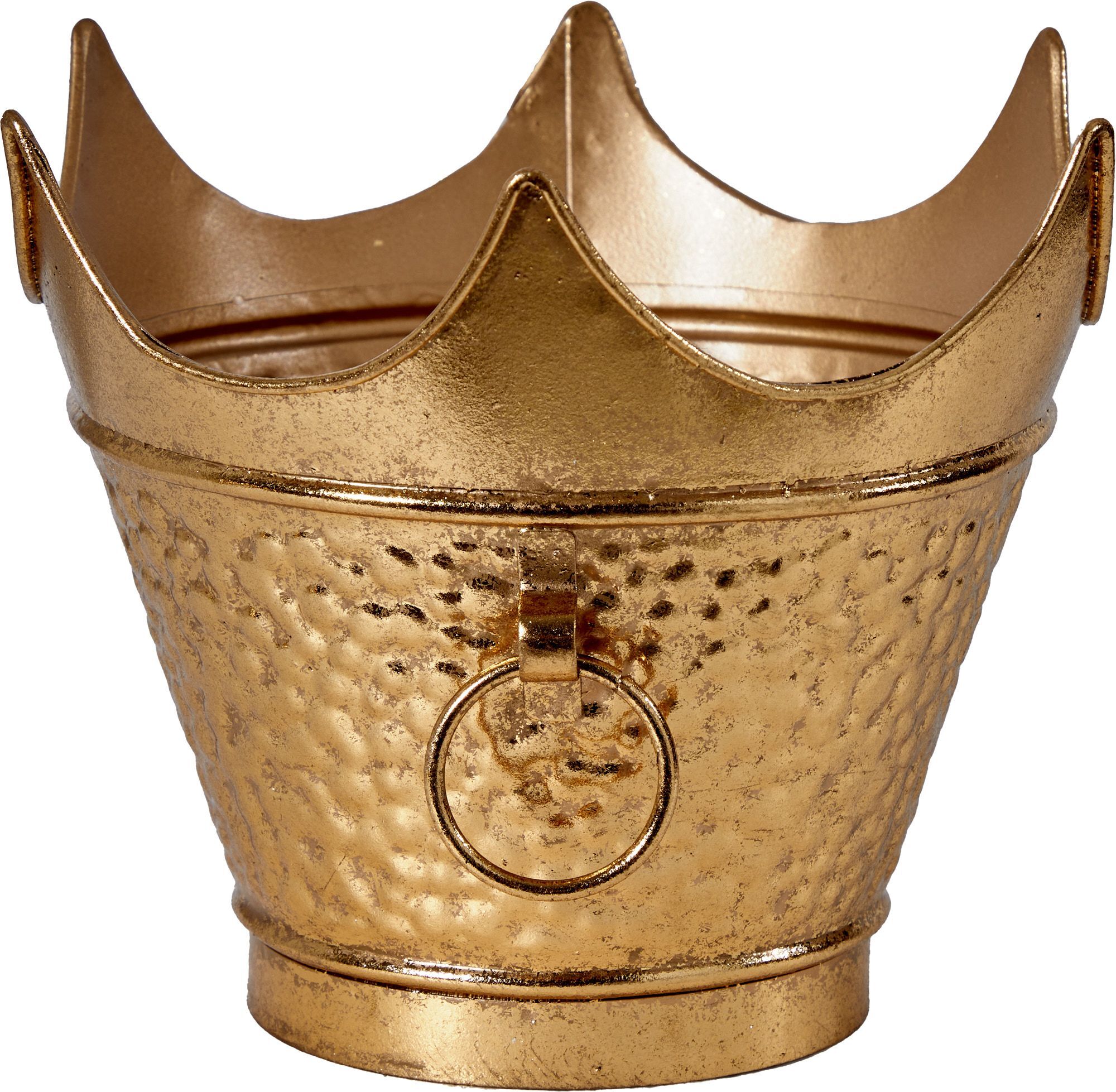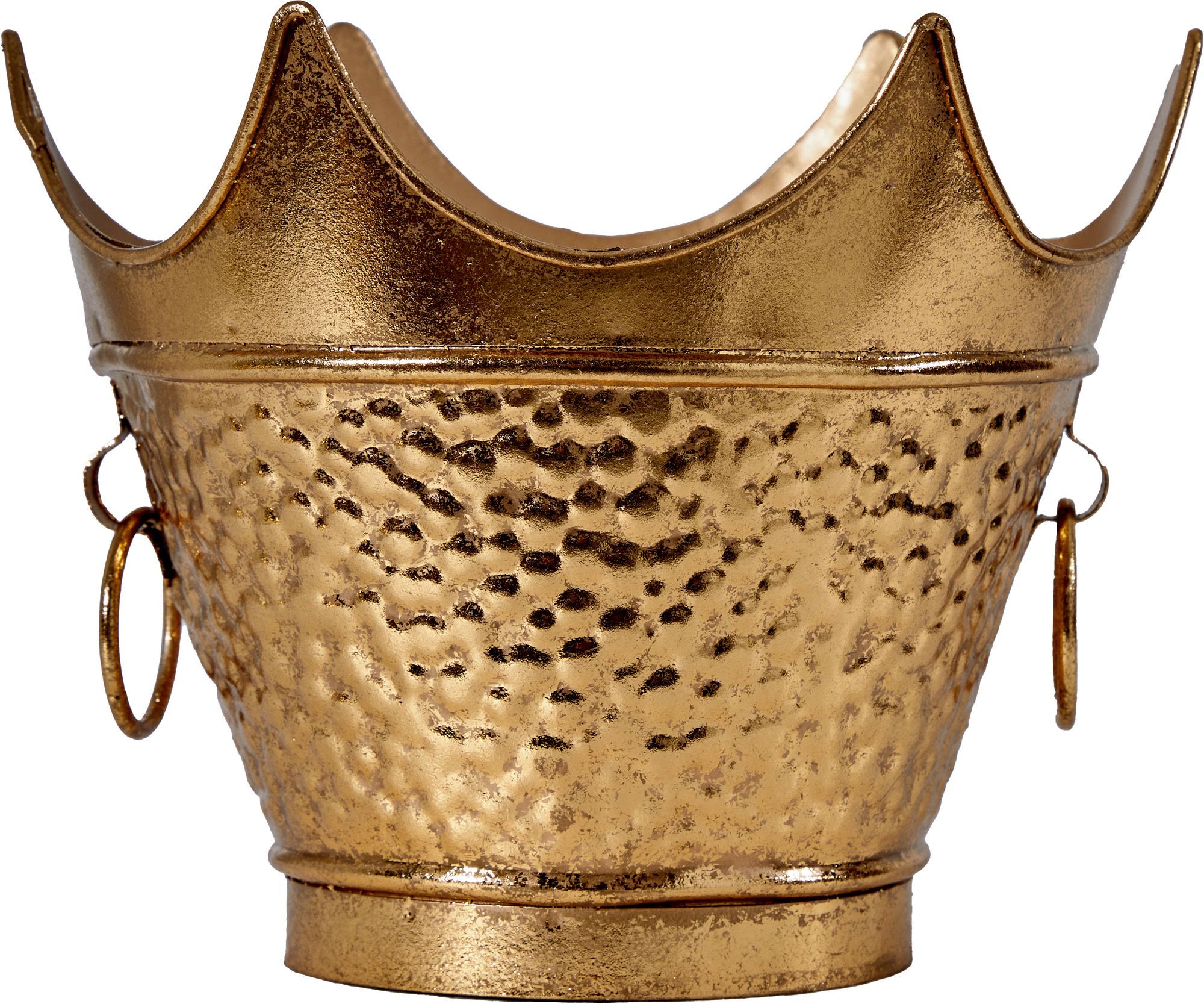 Восхитительное кашпо в виде короны, выполненное из металла с напылением золотистого цвета и фактурной отделкой. Цветочные композиции из сухоцветов, размещенные в это кашпо, создадут царственный образ в интерьере, восхищая ваших гостей неподражаемым стилем.