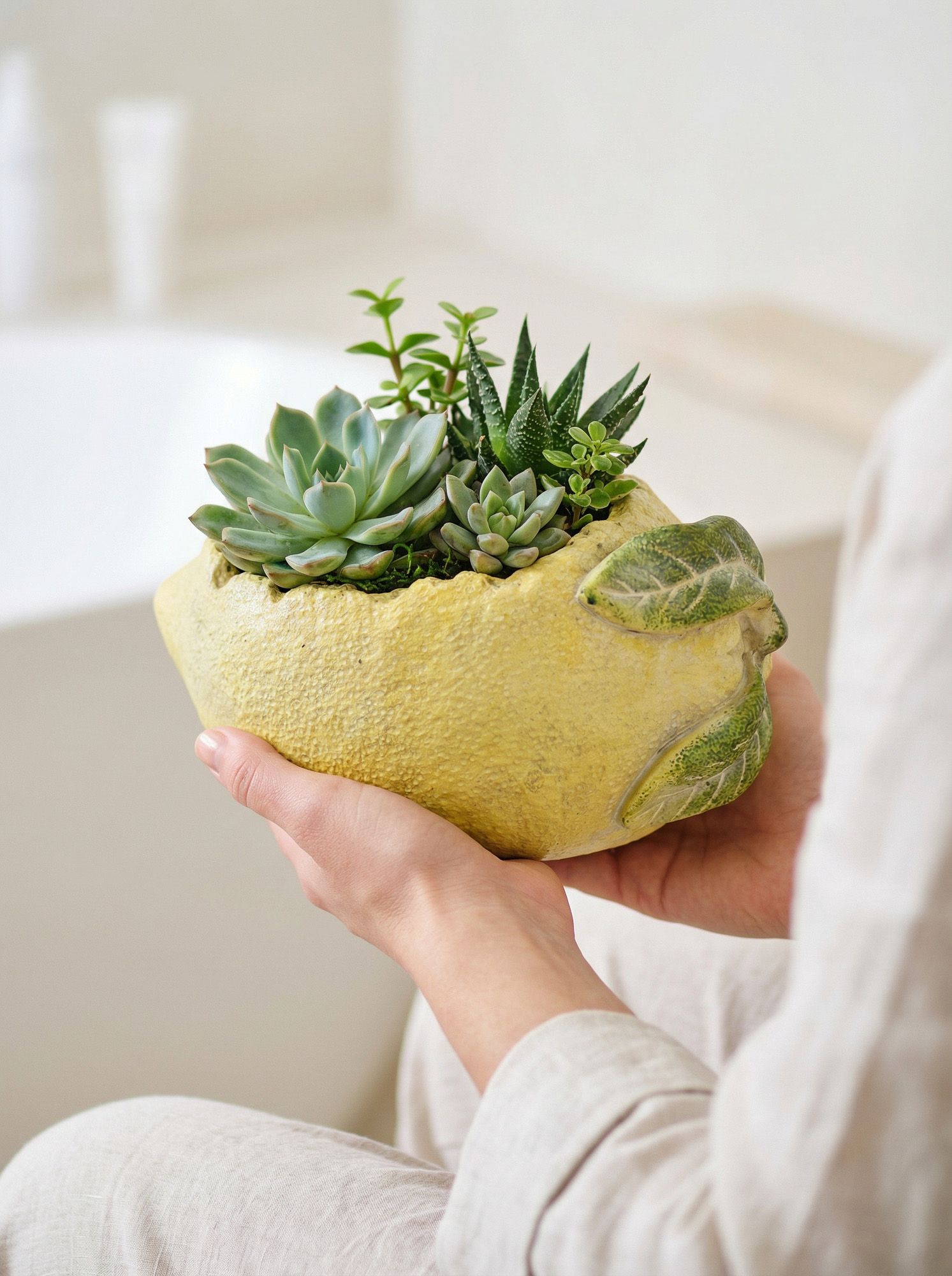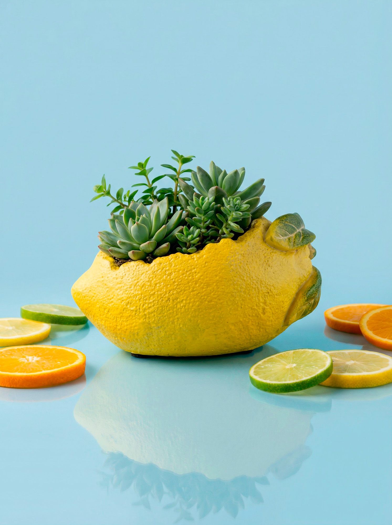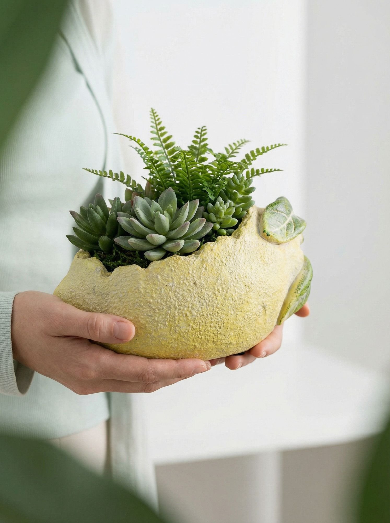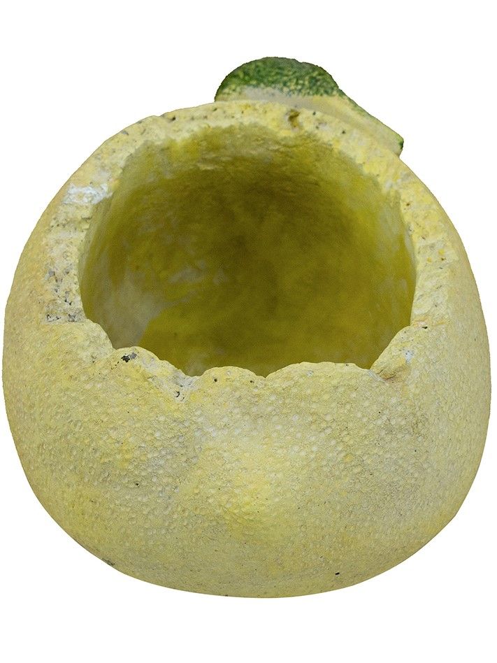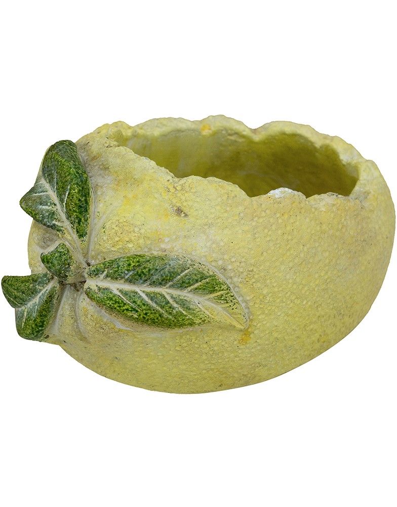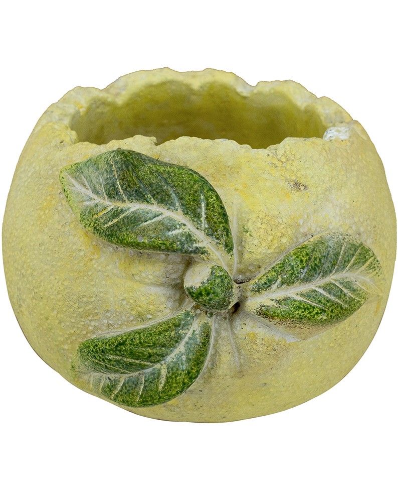 Чудесное и необычное кашпо, вдохновленное бескрайней красотой итальянских садов, выполненое в виде лимона в текстурированном желтом цвете с изящными акцентами зеленых листьев. Кашпо с фактурными краями, наполненное пышной зеленью, добавит ярких красок в интерьер вашей гостиной, прихожей или сада. Органичный дизайн и ручная работа позволяют этому изделию гармонично сочетаться с кантри, фермерским, модерн и богемным стилями, вписываясь в любой интерьер вашего дома.