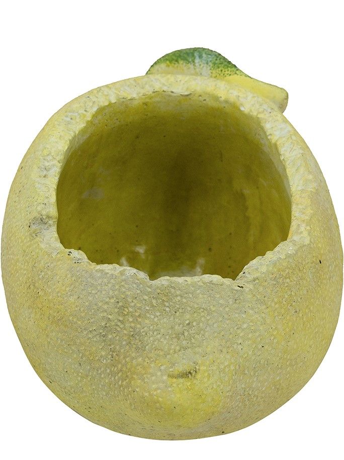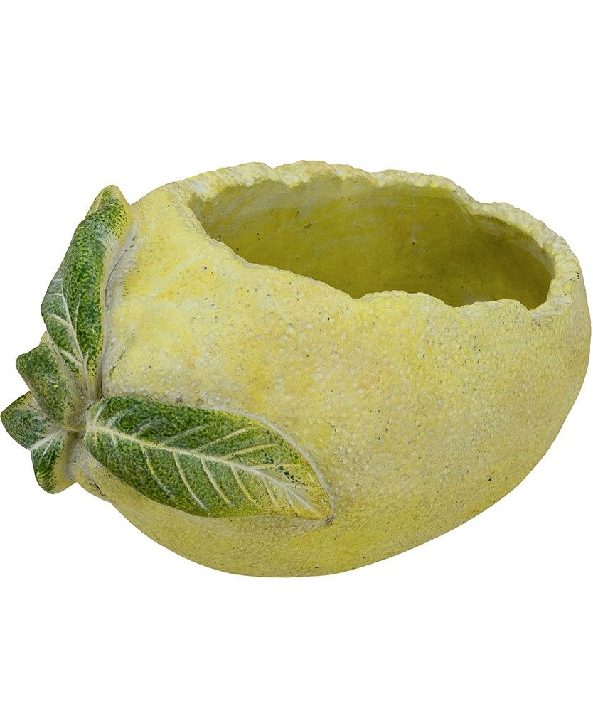 Чудесное и необычное кашпо, вдохновленное бескрайней красотой итальянских садов, выполненое в виде лимона в текстурированном желтом цвете с изящными акцентами зеленых листьев. Кашпо с фактурными краями, наполненное пышной зеленью, добавит ярких красок в интерьер вашей гостиной, прихожей или сада. Органичный дизайн и ручная работа позволяют этому изделию гармонично сочетаться с кантри, фермерским, модерн и богемным стилями, вписываясь в любой интерьер вашего дома.
