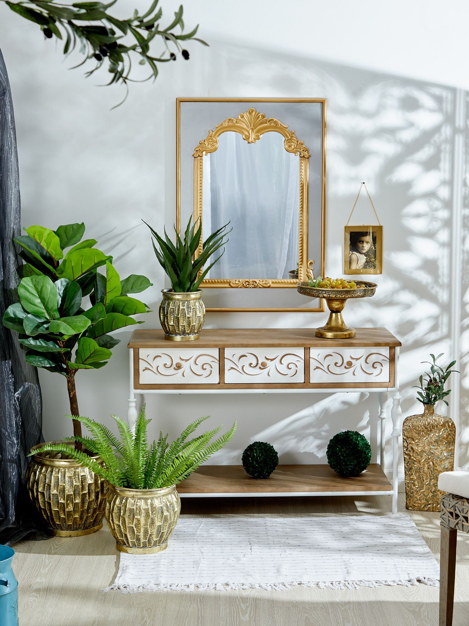 Набор из трех кашпо, выполненных из металла с эффектом под старину, напылением золотистого цвета и фактурными гранями. Изделия имеют признаки искусственного состаривания, поверхности декорированы с эффектом патинирования, а наличие сварочных швов подчеркивают принадлежность к ручной работе. Цветочные композиции из сухоцветов, размещенные в эти кашпо, создадут необычный образ в вашем интерьере. Эксклюзивные формы и фактуры навеяло богатство культуры Африки, множество художественных традиций и таинственная атмосфера, окутывающая неподражаемостью.