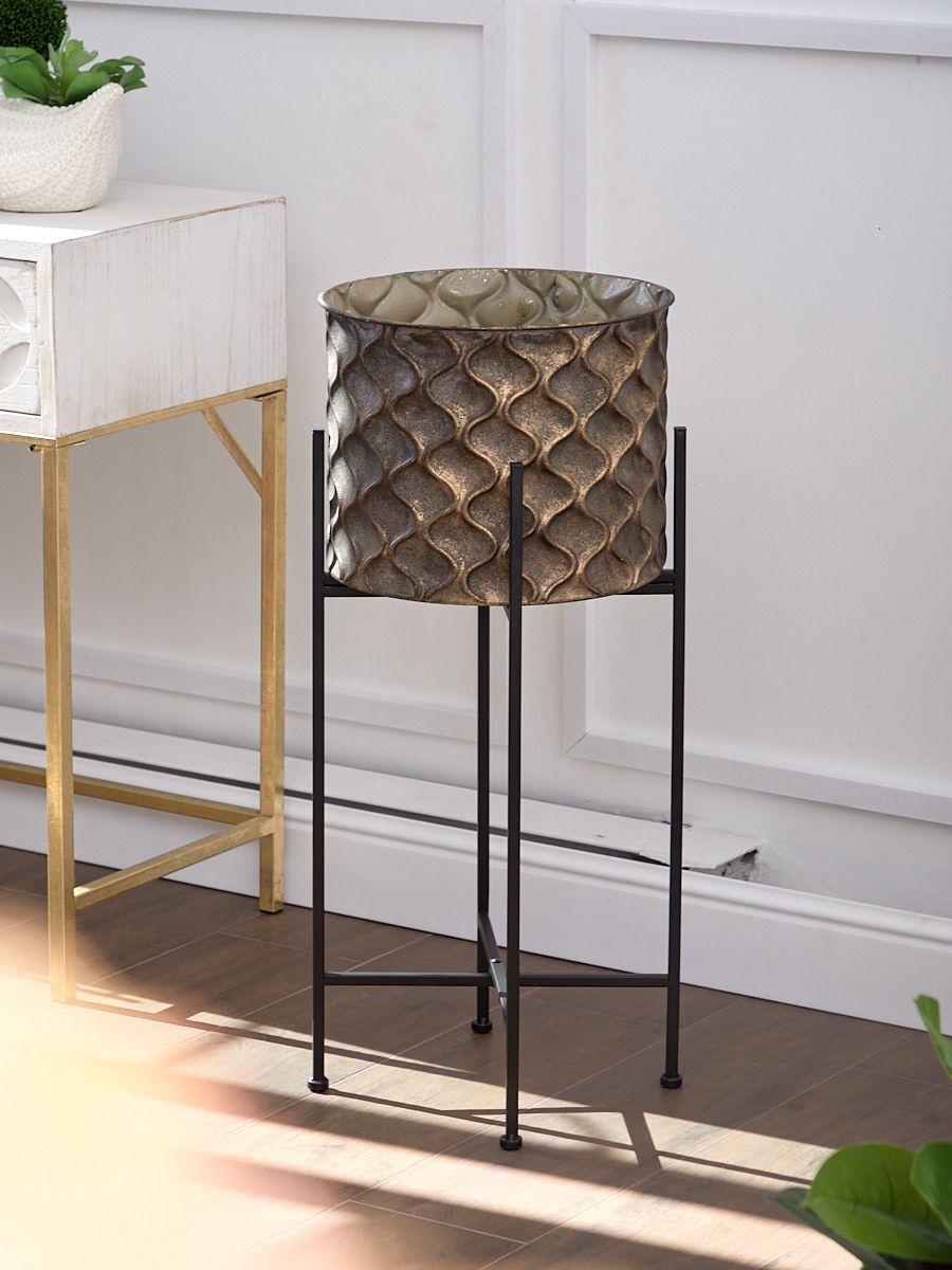 Оживите свой интерьер с помощью этого элегантного кашпо Конго, выполненного из металла в африканском стиле на раскладной подставке и созданного для цветочных композиций из сухоцветов. Благодаря своему изящному дизайну, изделие идеально впишется в любое пространство. Эксклюзивные формы и фактуры навеяло богатство культуры Африки, множество художественных традиций и таинственная атмосфера, окутывающая неподражаемостью. Изделие имеет признаки искусственного состаривания, поверхность декорирована с эффектом патинирования, а наличие сварочных швов подчеркивают принадлежность к ручной работе.