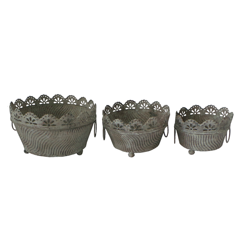 Кашпо напольное, набор из 3-х, для цветов декоративное, "белая патина"