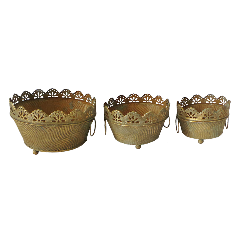 Кашпо напольное, набор из 3-х, для цветов декоративное, "золотая патина"