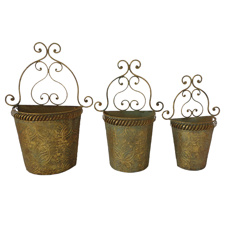Кашпо настенное, набор из 3-х, для цветов "золотая патина"