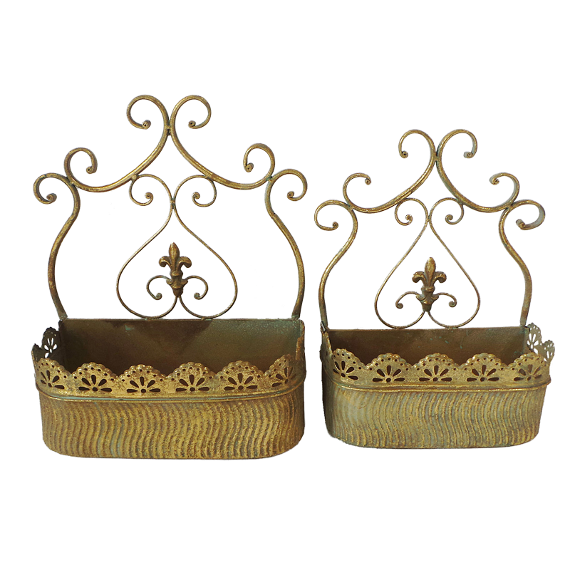 Кашпо настенное, пара, для цветов декоративное, "золотая патина"