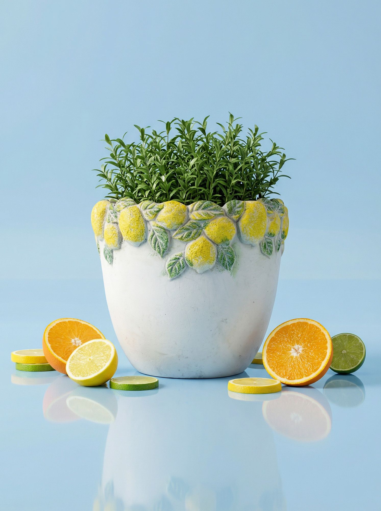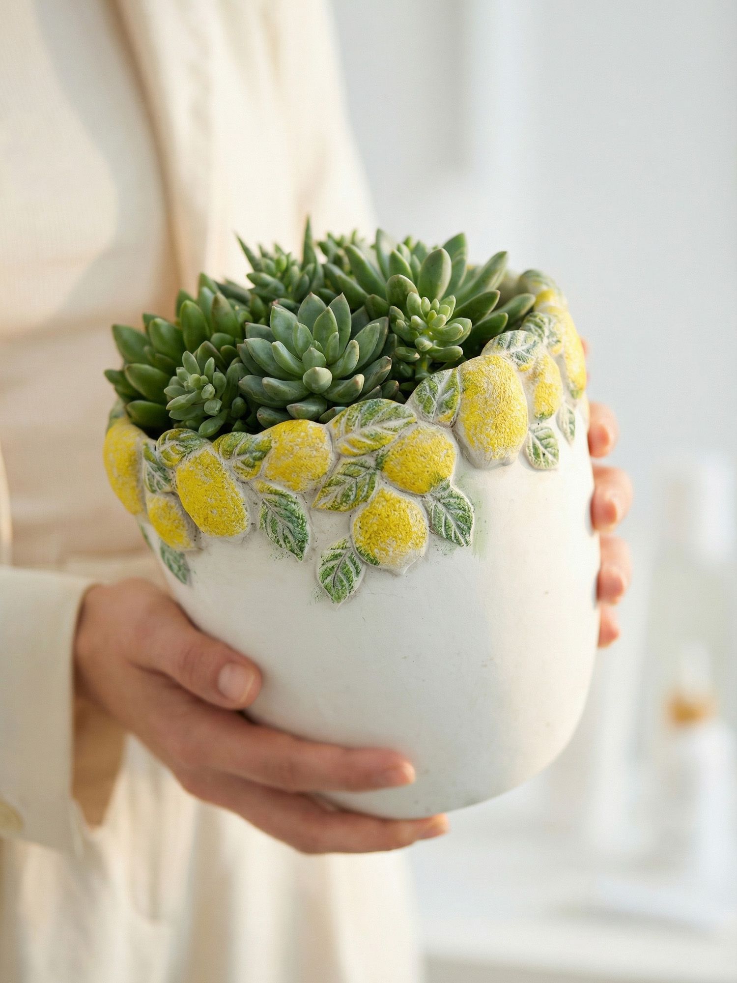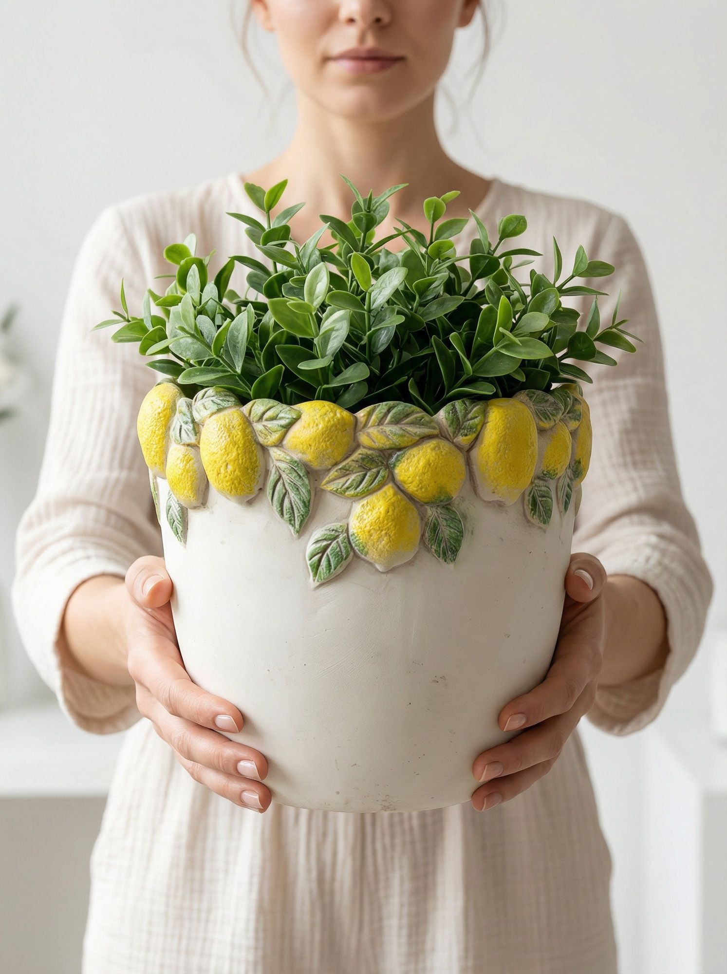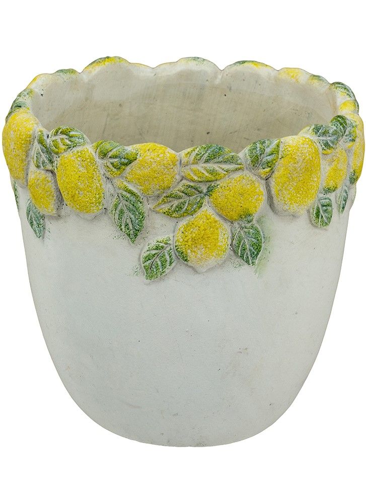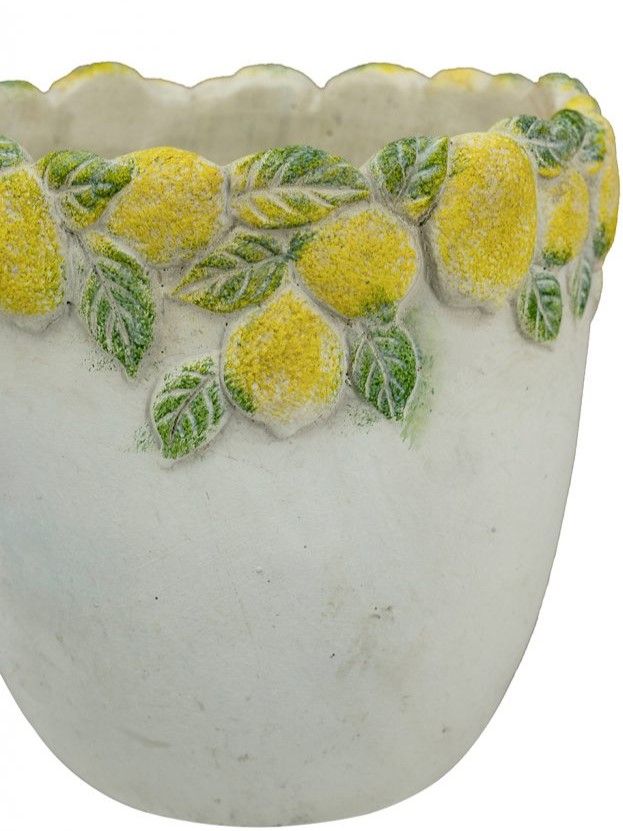 Эффектное кашпо, вдохновленное беззаботным очарованием Тоскании, имеет светло-серую матовую поверхность, фактурное горлышко и яркое изображение сочных лимонов с зелеными листьями. Создайте яркий образ в интерьере совместно с изделиями из этой коллекции, размещая пышные композиции из сухоцветов или искусственных цветов. Текстурированные детали и уютная цветовая гамма позволяют использовать кашпо в переходных, французских, дворянских, фермерских и богемных интерьерах, органично вписываясь в любой стиль.