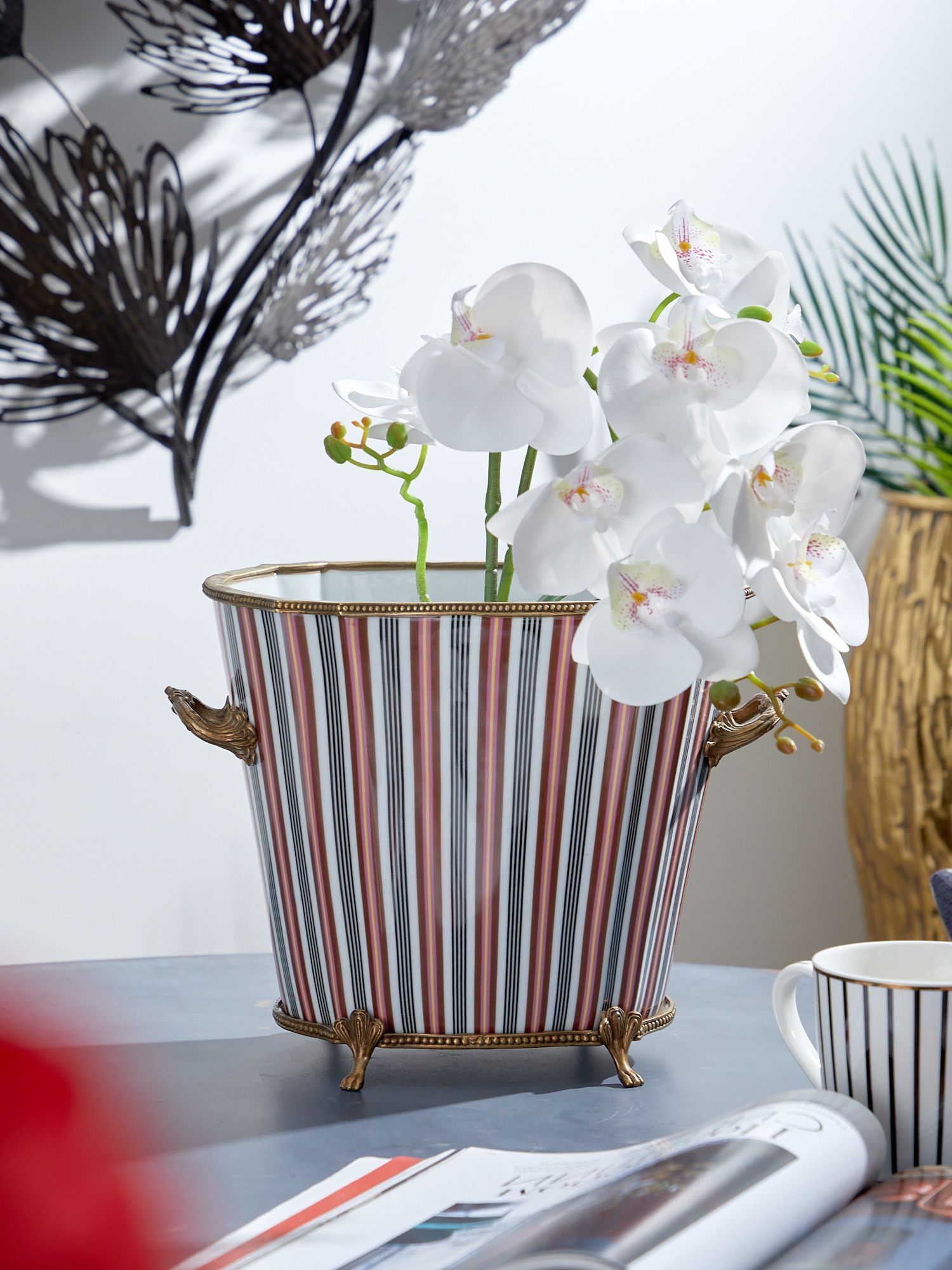 Кашпо с ручками, выполненное из фарфора с бронзовыми элементами. Уникальное изделие ручной работы. При производстве этих художественных изделий из фарфора с бронзой используются вековые традиции китайских мастеров.