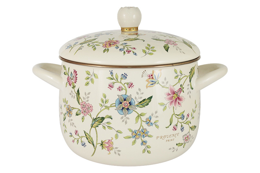 Кастрюля, 20 см, 4,3 л, с крышкой, с покрытием, сталь, молочная, Цветы, Provence