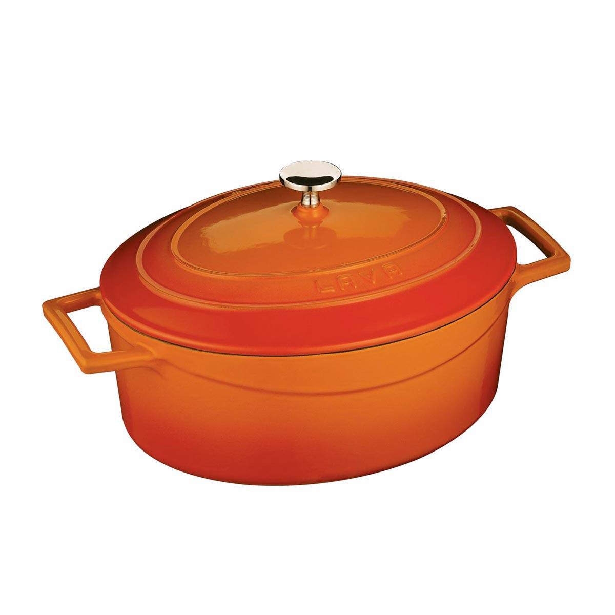 Кастрюля овальная, 4 л, 21x27см, H 12 см, чугун, цвет оранжевый
