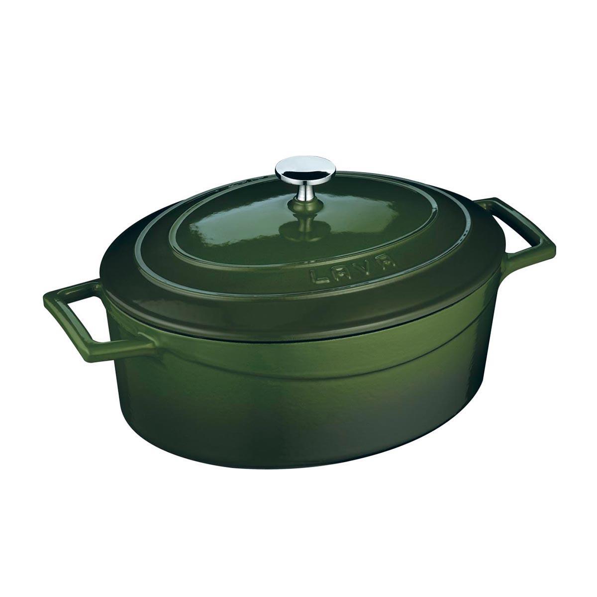 Кастрюля овальная, 4 л, 21x27см, H 12 см, чугун, цвет зеленый