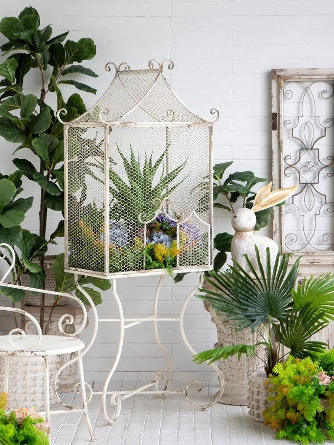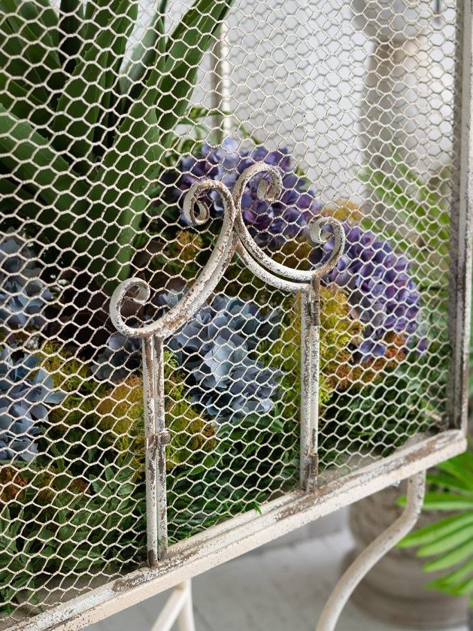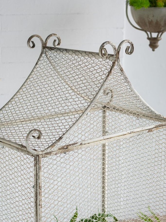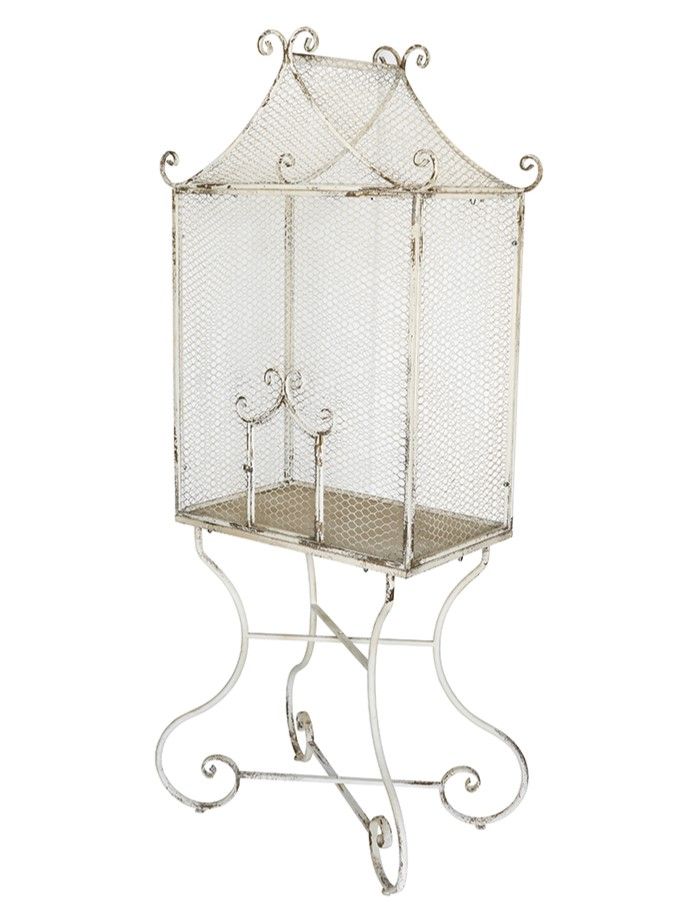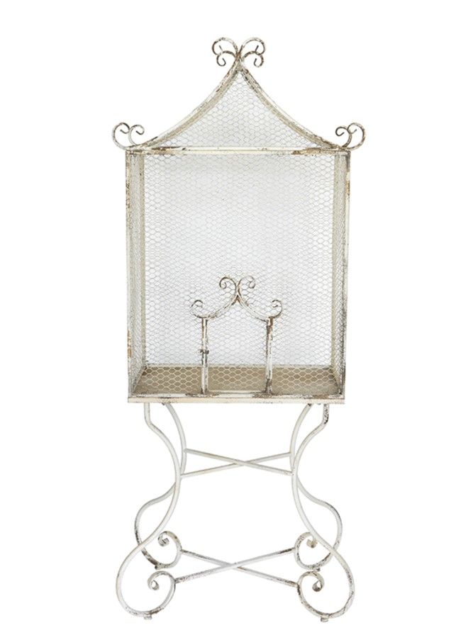 Утонченная элегантность винтажного дизайна отображается в этом изделии в виде клетки для птиц, а также отличается очаровывающей состаренной белой отделкой, фигурным нижним основанием и богато украшенной арочной крышей. Клетка идеально подходит для птиц, а также в качестве оранжереи для демонстрации растений, трав, суккулентов или ярких акцентов, это изделие придаст любому помещению нотку классического очарования.