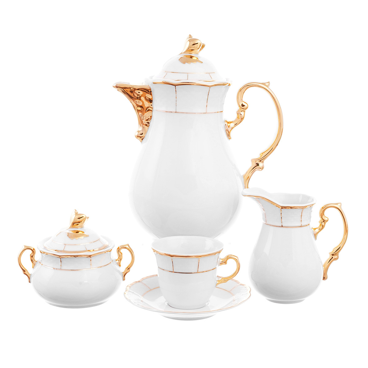 Кофейный сервиз Thun Менуэт Обводка золото 6 персон 17 предметов