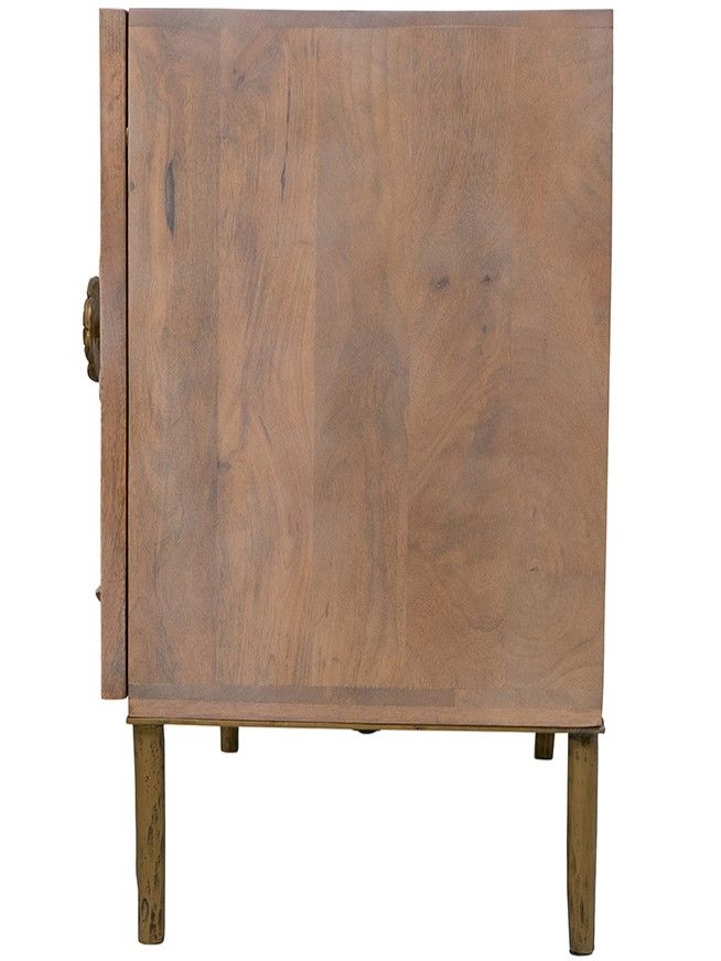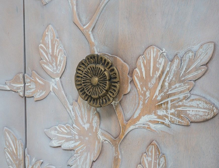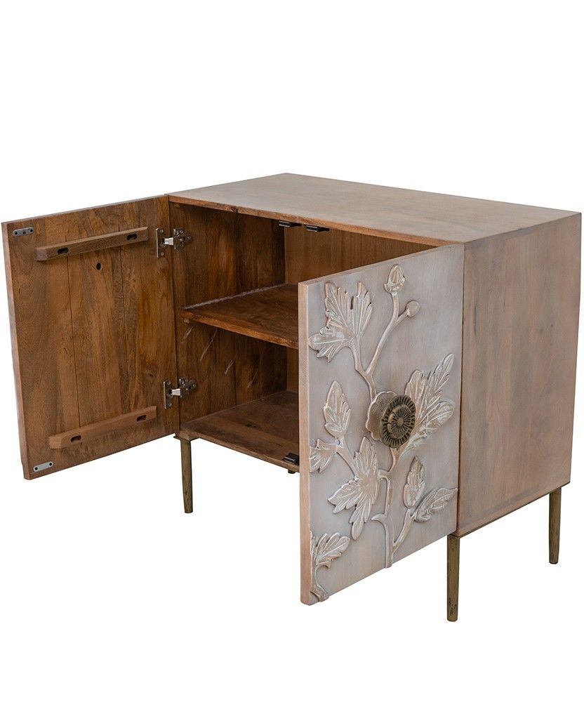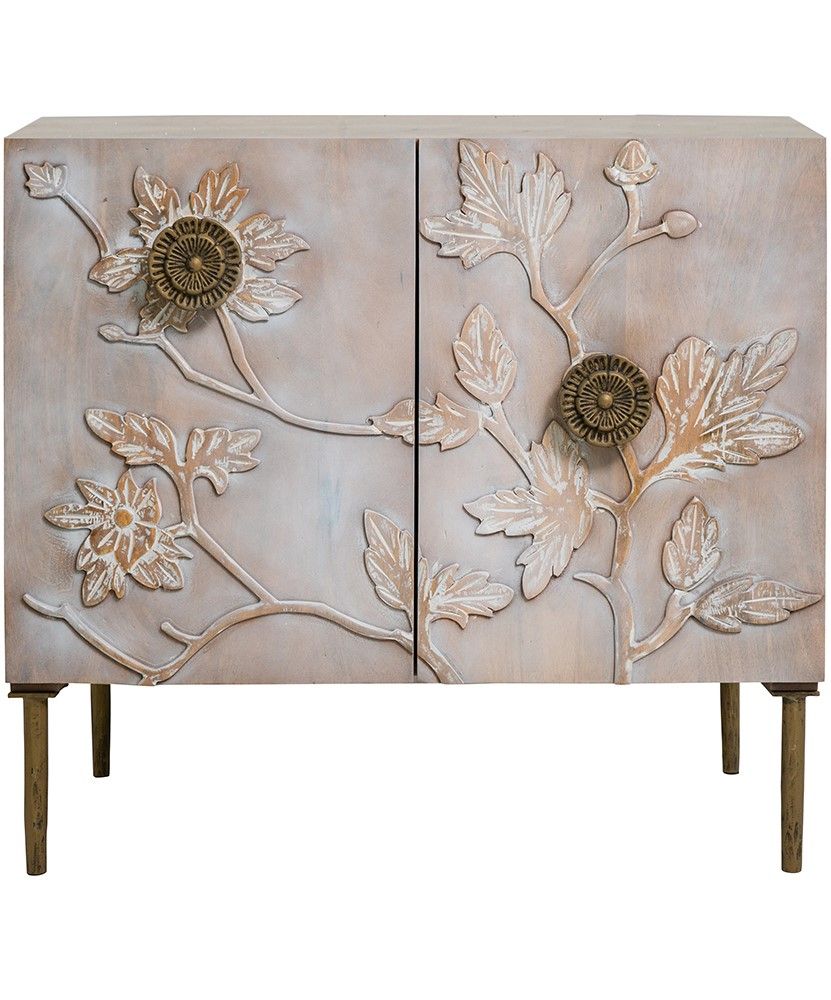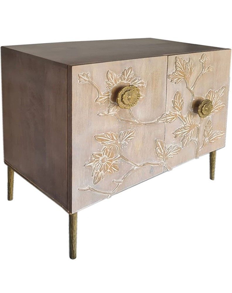 Двухдверный комод, вдохновленный винтажным дизайном, отличается элегантным прямоугольным силуэтом, сочетанием коричневых и мягких бежевых тонов с изящными цветочными узорами. Благодаря своей универсальности легко впишется в интерьер любой гостиной, прихожей или спальной комнаты, украсит ваш дом и станет удобным местом для хранения любимых вещей, дополняя интерьеры в стиле кантри, богемном, переходном и стиле французской провинции.