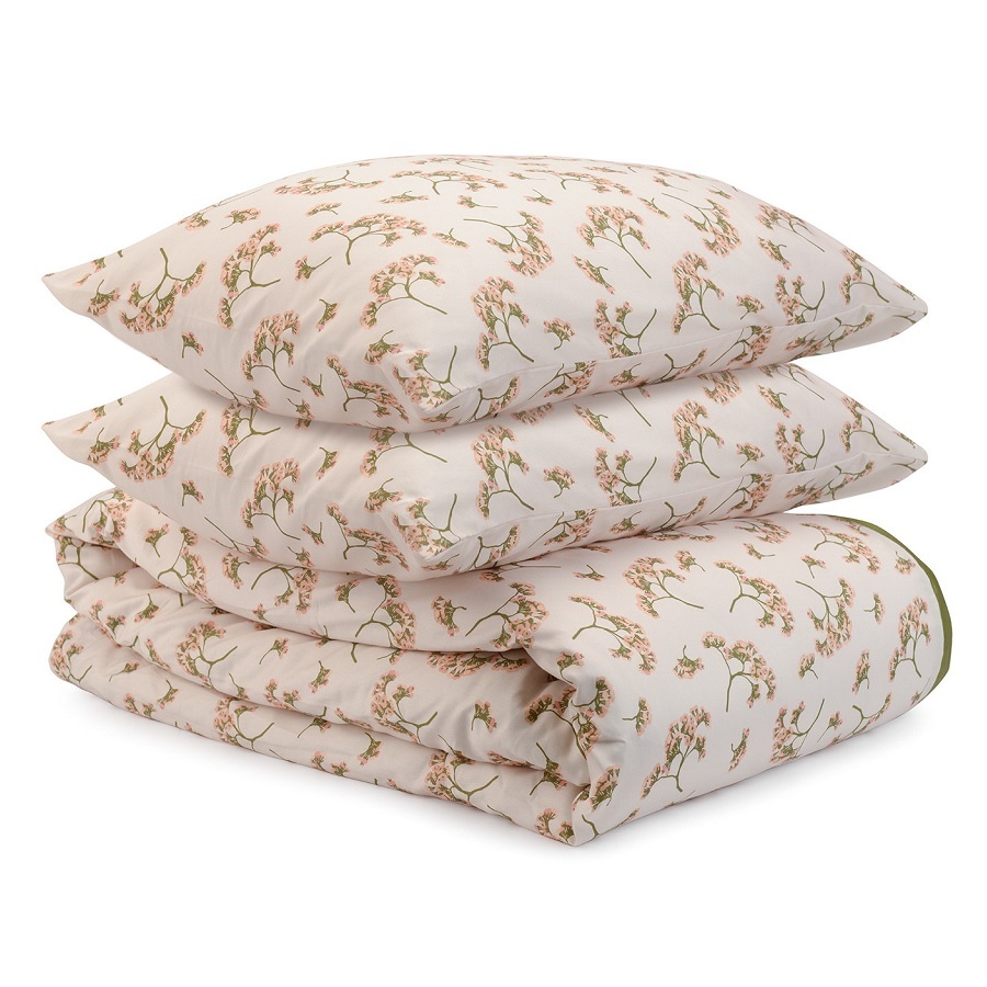 "Комплект постельного белья из сатина оливкового цвета с растительным принтом ",Степное цветение", из коллекции Prairie - прекрасный выбор для любителей классических природных мотивов. Двухсторонний пододеяльник позволяет создавать разные комбинации, спокойный цветочный орнамент или глубокий оливковый - выбор за вами. Хлопковый сатин плотностью 210 ТС приятен на ощупь и обладает естественным блеском. Он не теряет внешний вид даже после множества стирок, не деформируется и не линяет, на нем не образуются катышки.