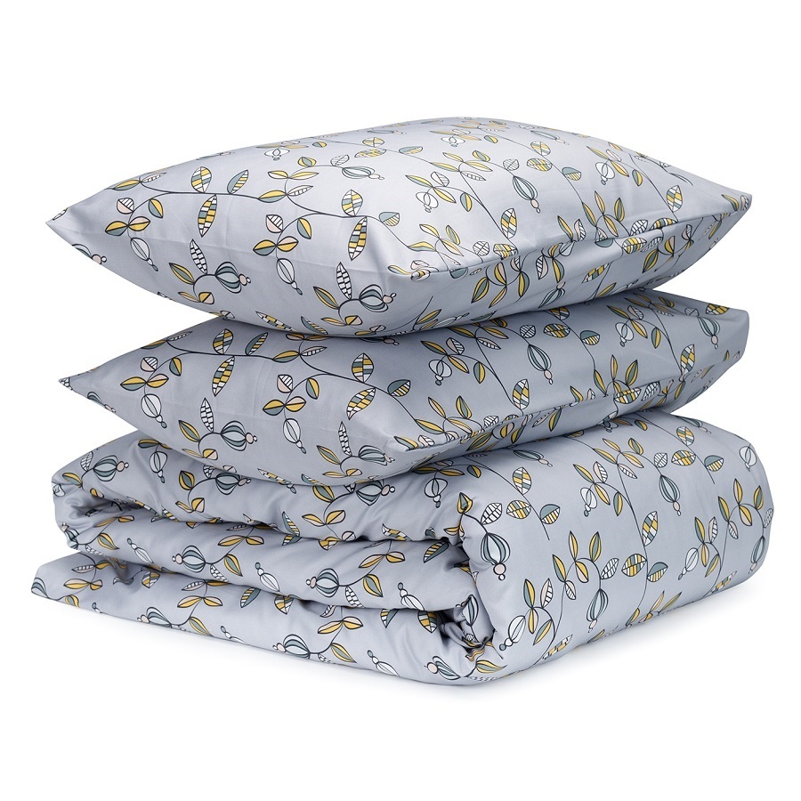 "Комплект постельного белья из сатина с растительным принтом ",Ягоды тайги", из коллекции Russian North добавит атмосферу природы русского севера в ваш интерьер. Разбавив его наволочками и простыней светло-серого или горчичного цветов из коллекции Essential, вы получите готовое дизайнерское решение для вашей спальни. Хлопковый сатин плотностью 210 ТС приятен на ощупь и обладает естественным блеском. Он не теряет внешний вид даже после множества стирок, не деформируется и не линяет, на нем не образуются катышки.
