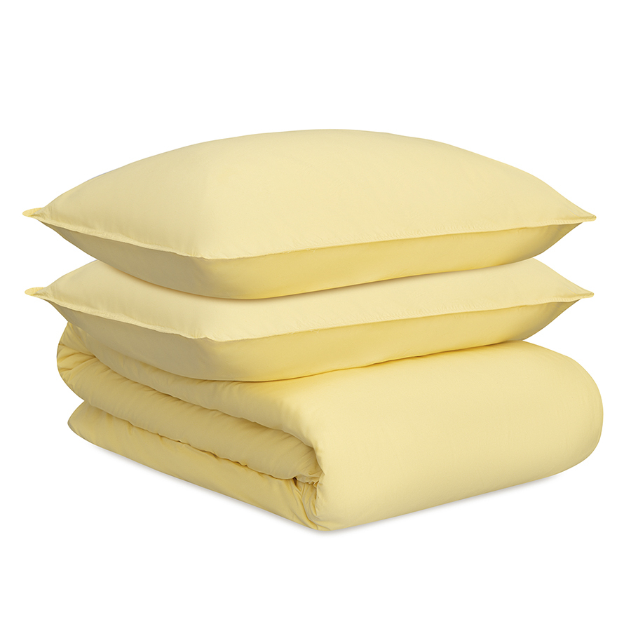 "Комплект постельного белья светло-желтого цвета из коллекции Essential позволяет погрузиться в мир гармонии и уюта. Наволочки и пододеяльник из стираного перкаля дарят приятные тактильные ощущения, радуя своим премиальным качеством. Мягкая фактура, натуральный состав и дышащие свойства материала создают идеальные условия для комфортного отдыха и сна.