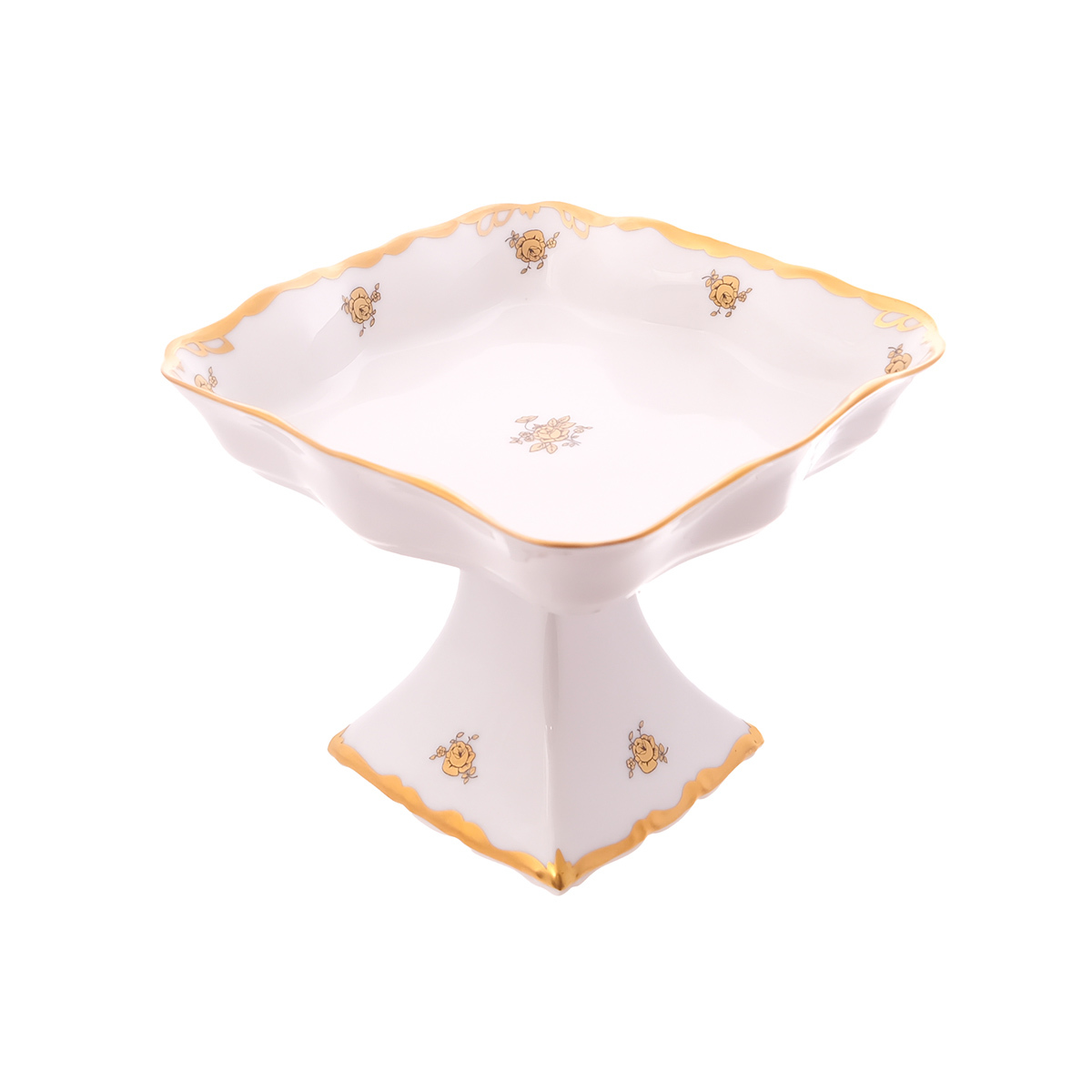Конфетница на ножке квадратное Queen's Crown Золотая роза 21 см