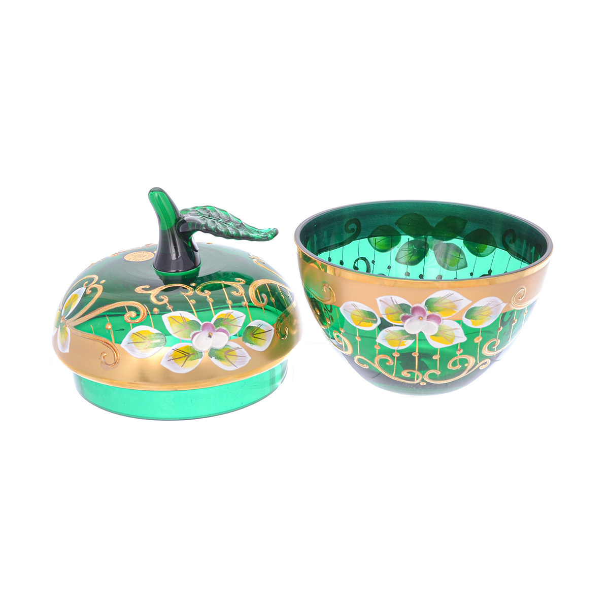 Конфетница с крышкой зеленая Star Crystal 10,5 см