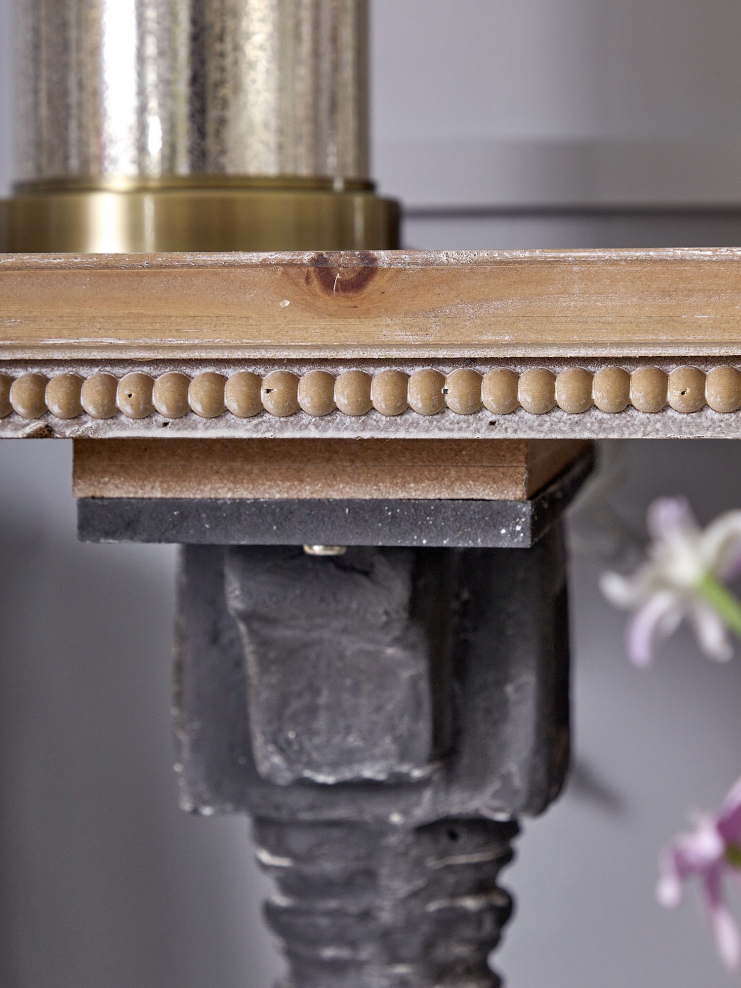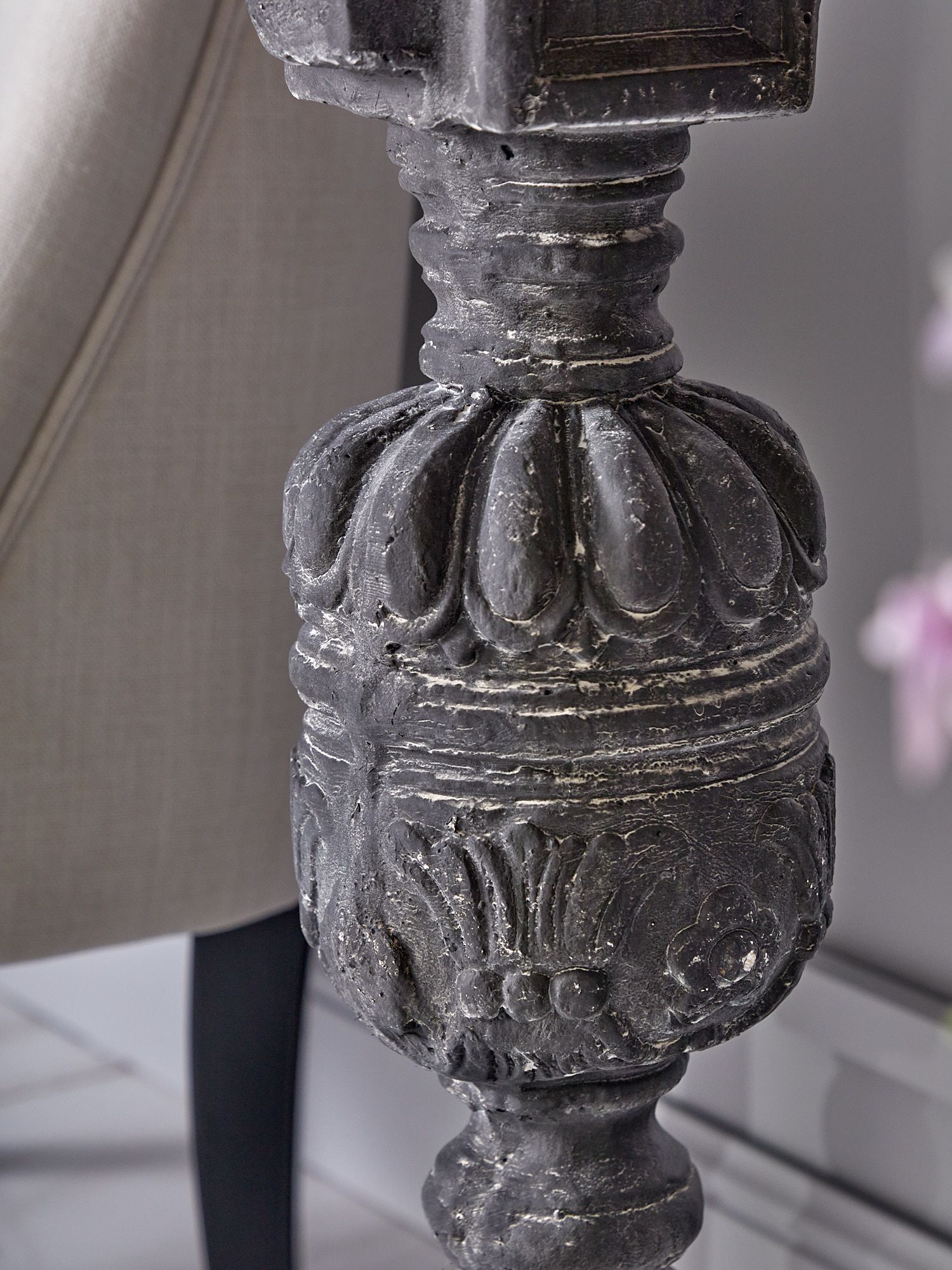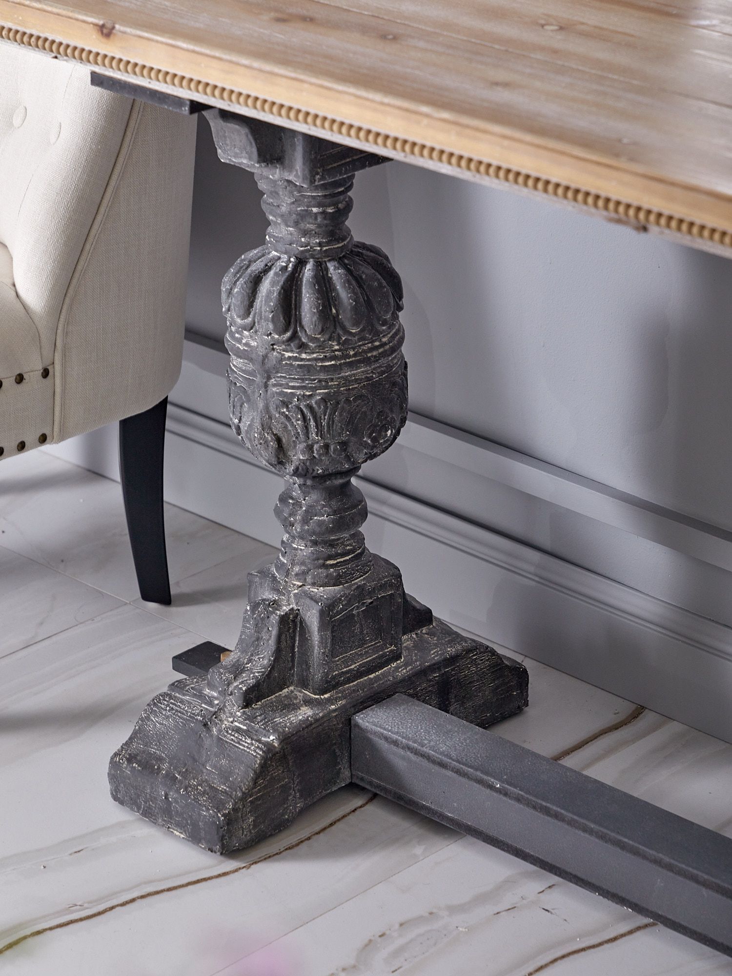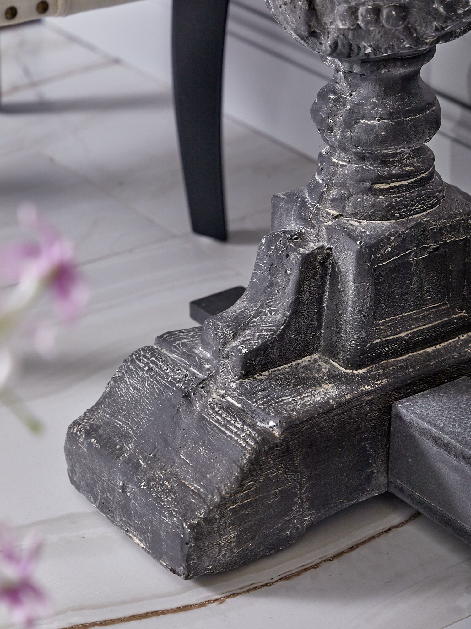 Консольный стол с прямоугольной деревянной столешницей, резное основание которого украшено элегантными формами греческих и римских эпох, создаст особенный стиль в интерьере вашего дома. Станет великолепной основой для вазы с яркими цветами, горящих свечей или стопки книг. Установите это изделие в шикарной гостиной или на просторной веранде загородного дома. Поверхностные потертости и неровности с эффектом реставрации, трещины и сколы краски на изделии характеризуют индивидуальный подход к производству каждого предмета, создавая задуманный дизайнером античный образ ушедших эпох.