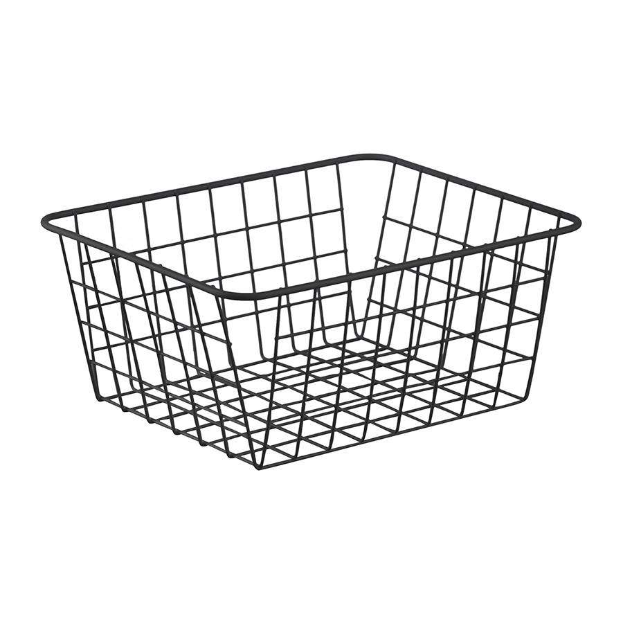 "Корзина Mina выполнена из прочной железной проволоки, что делает ее практичной, удобной в использовании и долговечной. Порошковое покрытие с матовым финишем предотвращает коррозию металла и обеспечивает изделию привлекательный внешний вид. Емкость для хранения оптимальных размеров позволяет компактно разместить кухонные принадлежности, посуду и многое другое. Проволочное плетение ненавязчиво демонстрирует находящиеся внутри предметы и хорошо их фиксирует, защищая от падения и повреждений. Дизайн подходит для различных современных интерьерных стилей.