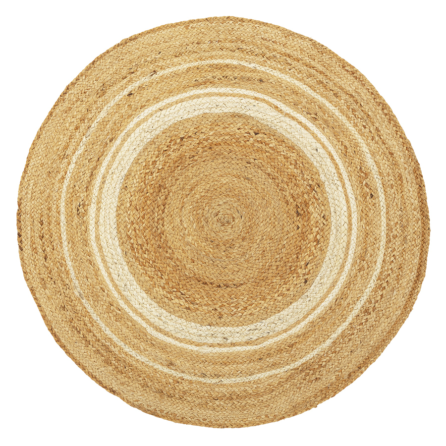 "Ковер из джута круглый из коллекции Ethnic – отличное сочетание традиционного дизайна и натуральных материалов. Естественный оттенок и отсутствие дополнительных элементов в виде бахромы и сложных узоров делают это напольное покрытие универсальным. Такой ковер прекрасно вписывается в современные интерьеры и эклектичные пространства, создавая ощущение уюта и тепла домашнего очага. Белые вставки освежают дизайн и помогают в расстановке цветовых акцентов в оформлении. Джутовые волокна отличаются высокой прочностью, могут выдерживать большие нагрузки и сохраняют первоначальную форму на протяжении долгого времени. Это гарантирует готовому изделию практичность и долговечность. Материал не вызывает аллергических реакций, не накапливает статическое электричество и легко очищается.