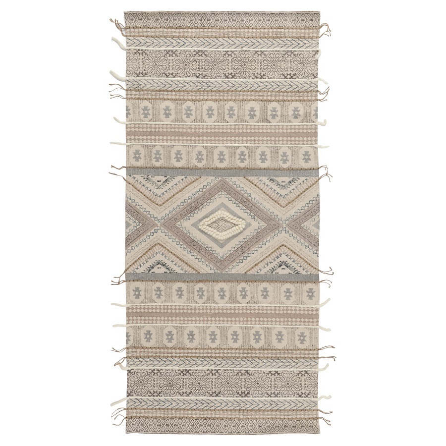 "Ковер из хлопка, шерсти и джута с геометрическим орнаментом из коллекции Ethnic нейтрального цвета впишется в любой интерьер и станет необычным акцентом. Оригинальное и практичное изделие выполнено из натуральных материалов и представлено в нескольких размерах. Плотность: 1000 г/м2.
