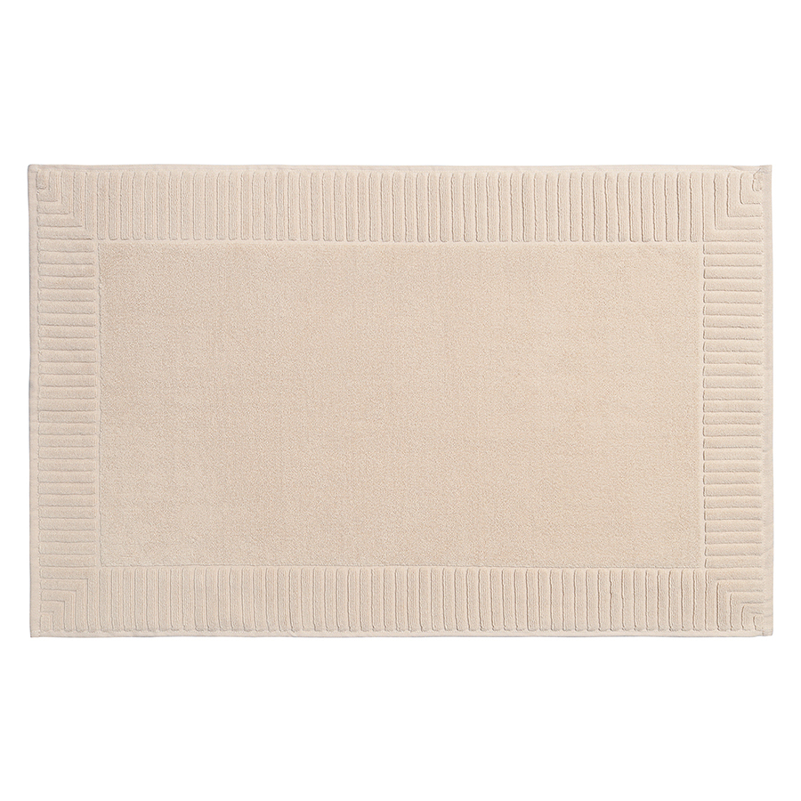"Коврик кремового цвета с фактурным бортиком из коллекции Essential – стильное дополнение к интерьеру современной ванной комнаты. Выполненный в нейтральном оттенке, он прекрасно сочетается с отделкой и мебелью в любых тонах, создавая ощущение комфорта, уюта и чистоты.