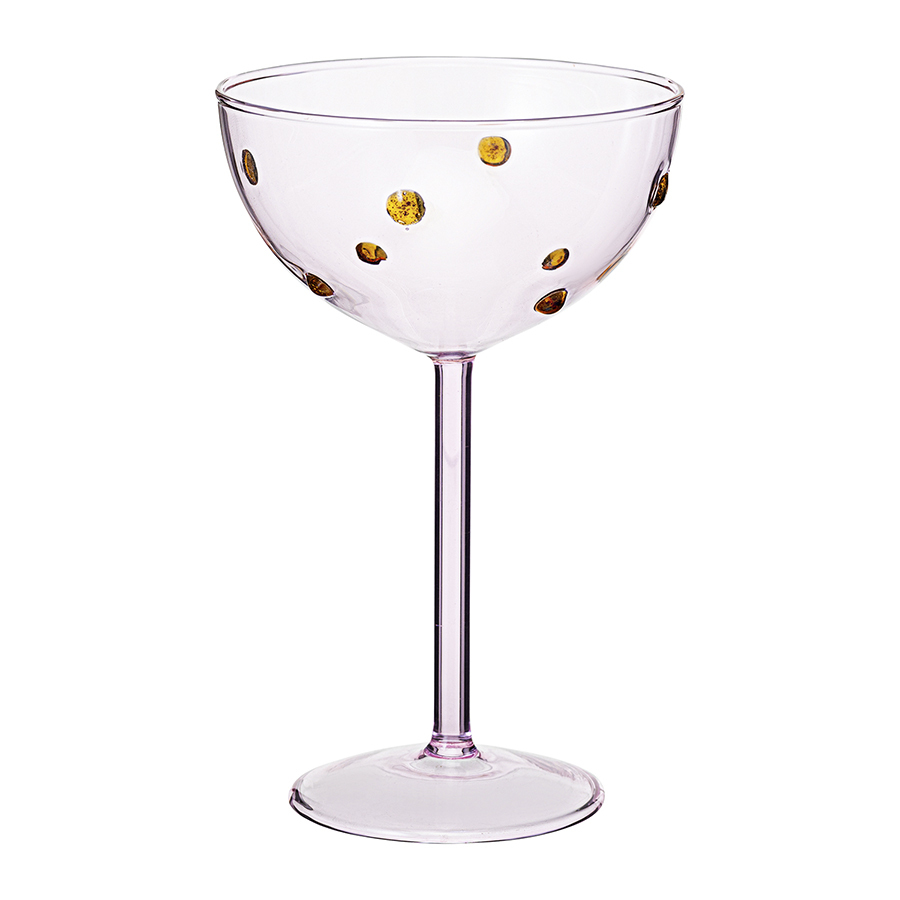 "Креманка Pom-pon станет прекрасным приобретением для тех, кто любит необычные предметы сервировки. Такой вид посуды идеально подходит для подачи игристых вин и десертов. Коллекция привлекает внимание интересным дизайном – стенки бокалов, стаканов и креманок украшает объемный декор в виде застывших цветных капель.
