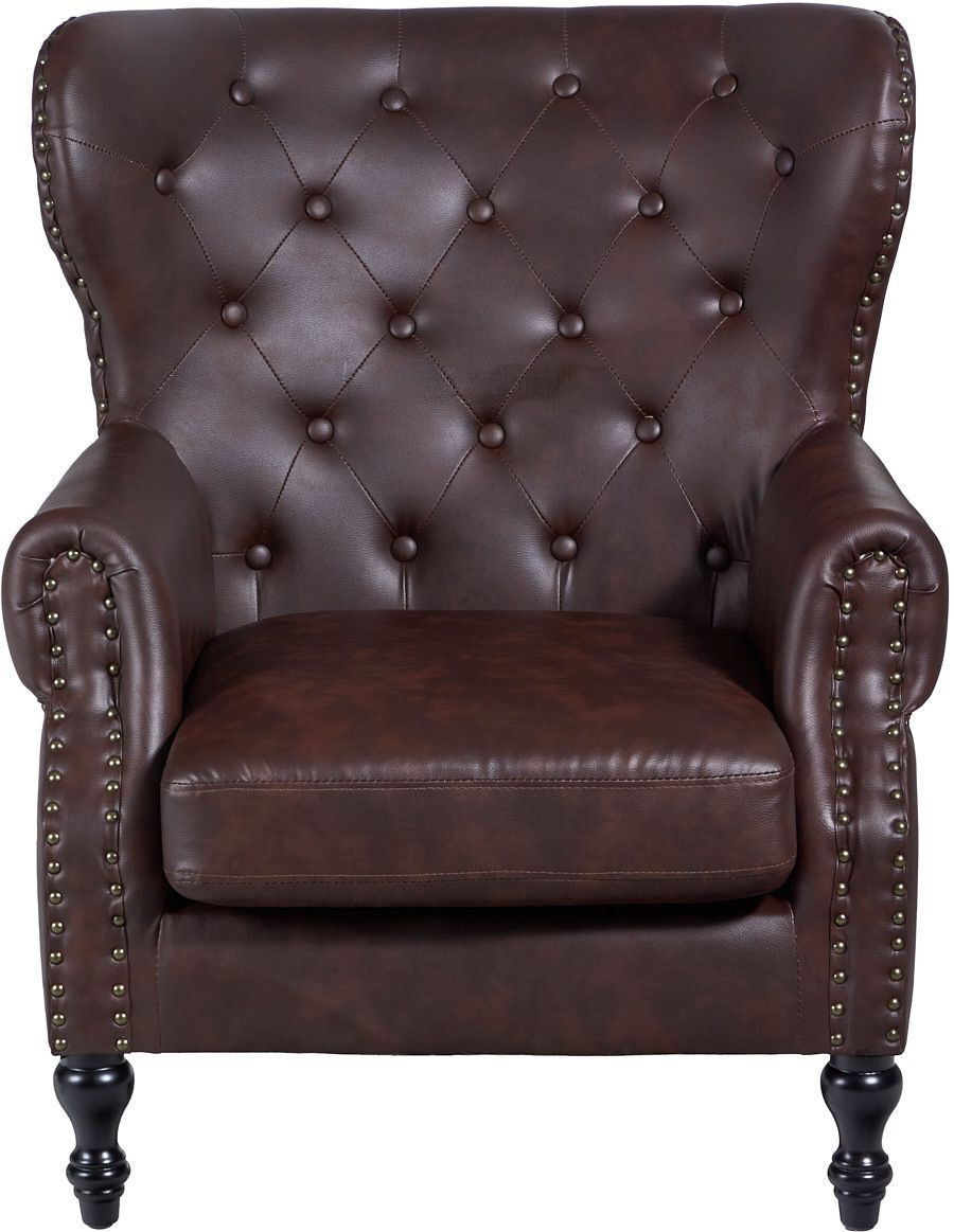 Демонстрируя традиционную форму дворянского стиля, это роскошное кресло с ярко-коричневой обивкой из искусственной кожи, стеганной широкой спинкой, удобными подлокотниками и отделкой по боковой части сидения, послужит ярким акцентом в интерьере вашего дома. Богатый образ этого изделия встретит ваших гостей с величием и гостеприимством.