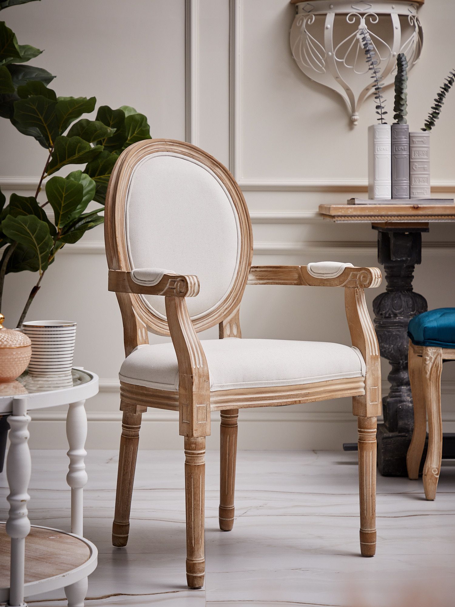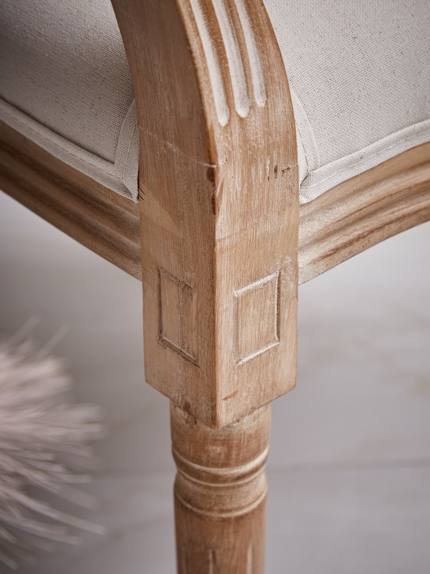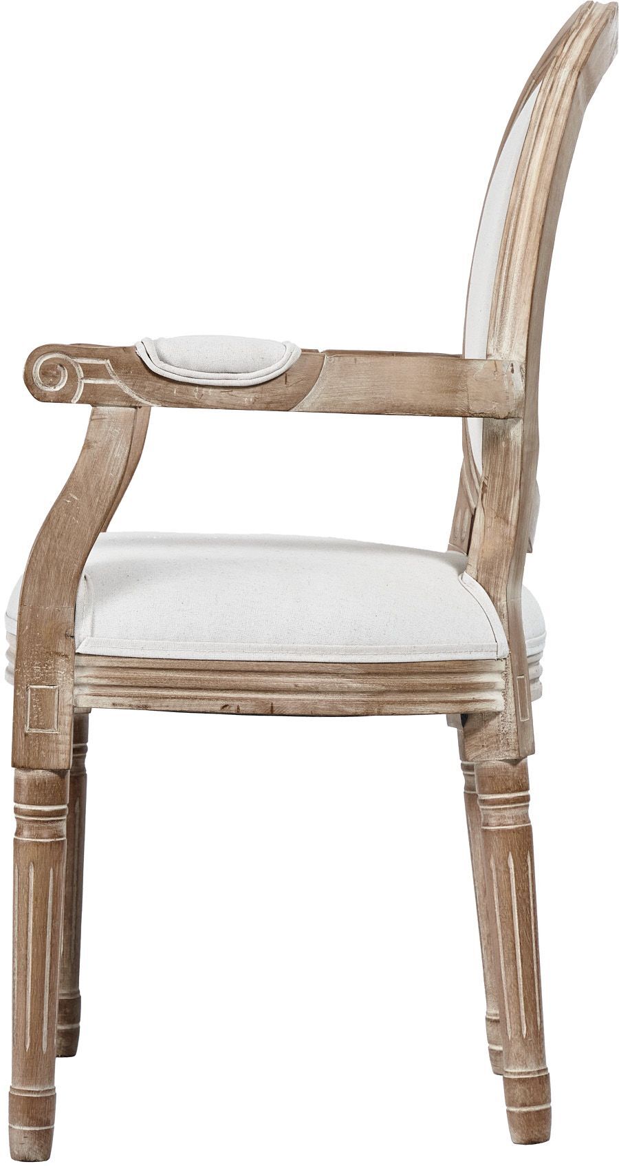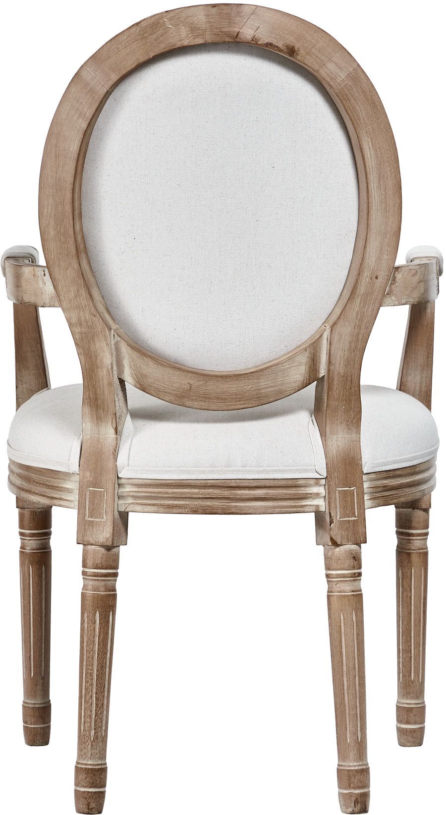 Великолепное кресло с резными подлокотниками и ножками, выполненное из натурального дерева с отделкой льняной тканью. Богатый образ этого изделия встретит ваших гостей с величием и гостеприимством. Поверхность деревянного каркаса выполнена с признаками искусственного состаривания и декорирована тонк