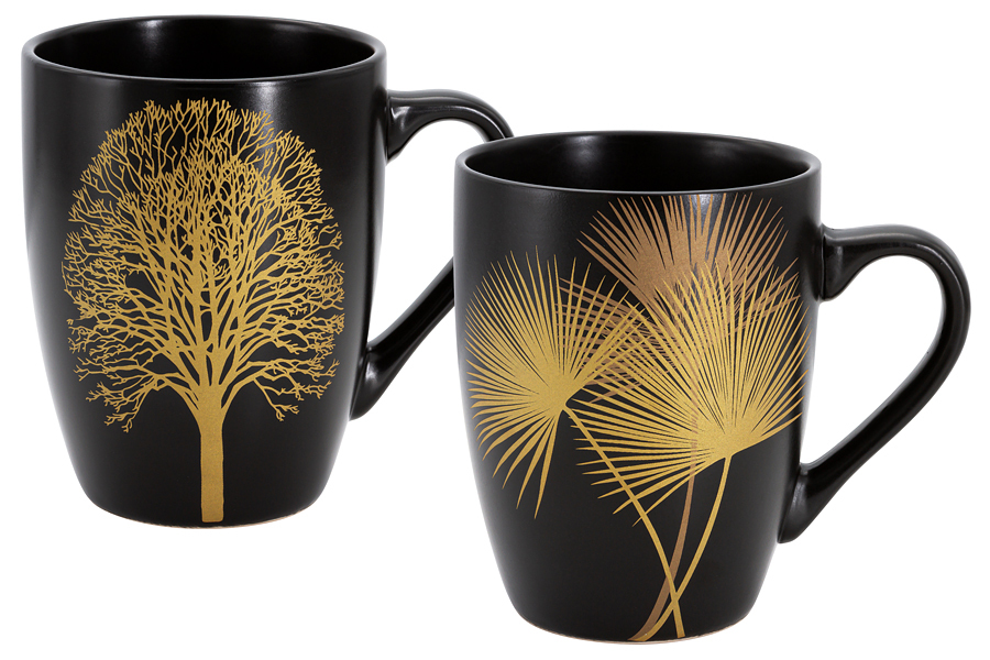 Кружка, 330 мл, 2 шт, керамика К, черная, золотистый декор, Singapore